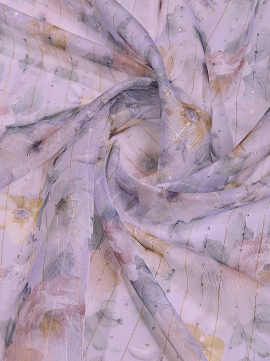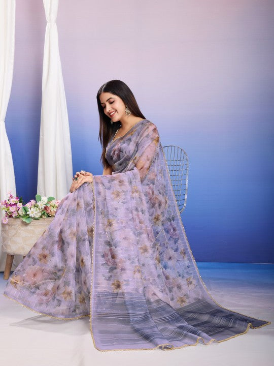 Floral Print::Printed Bollywood Organza (Purple)