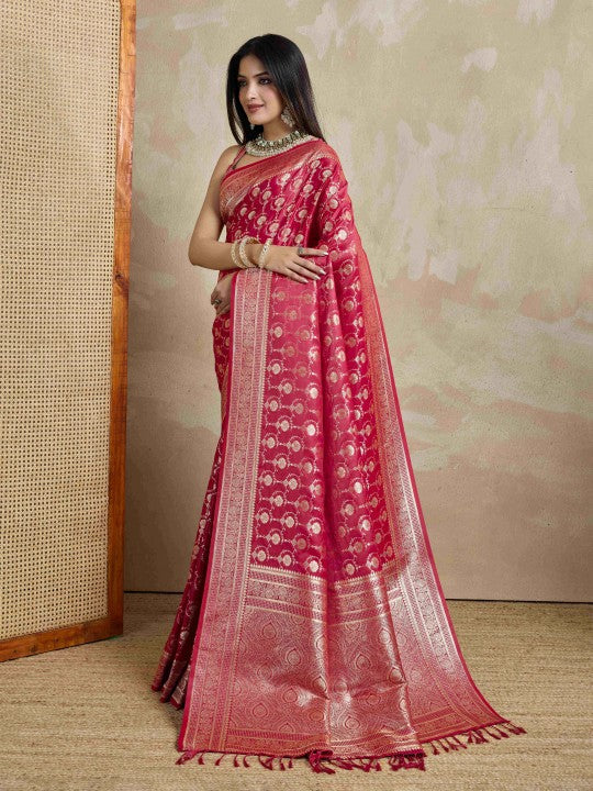 Woven Mysore Satin Saree (Red)