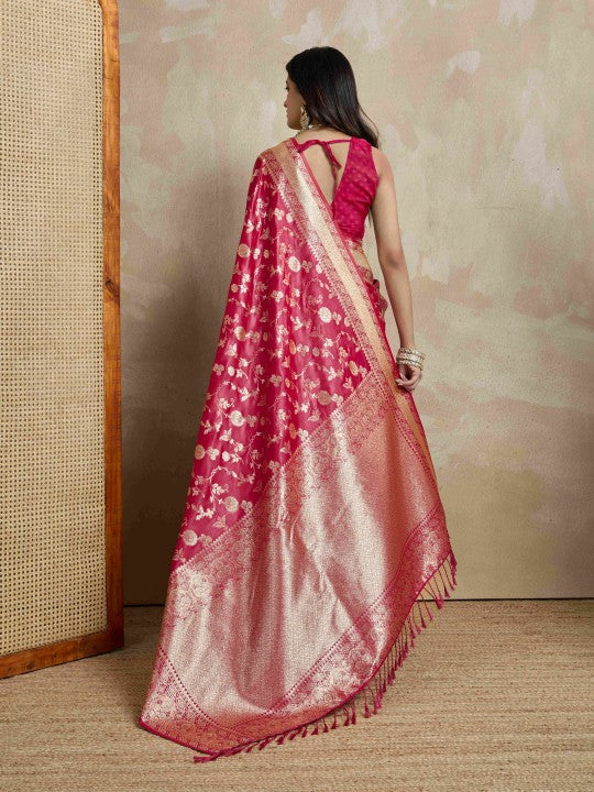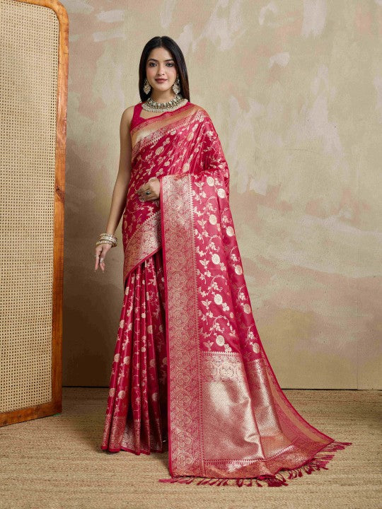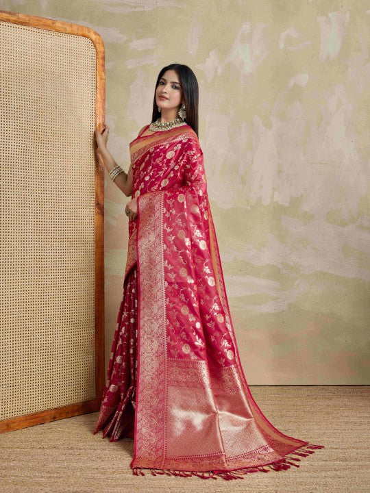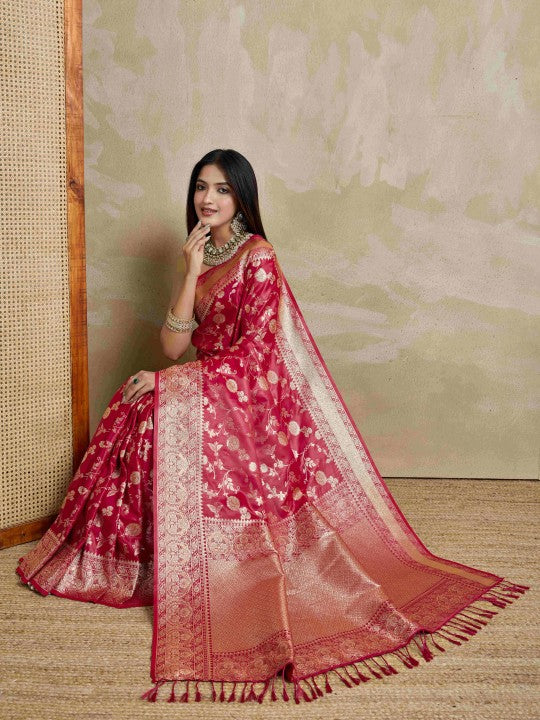 • Woven Mysore Satin Saree (Red)
