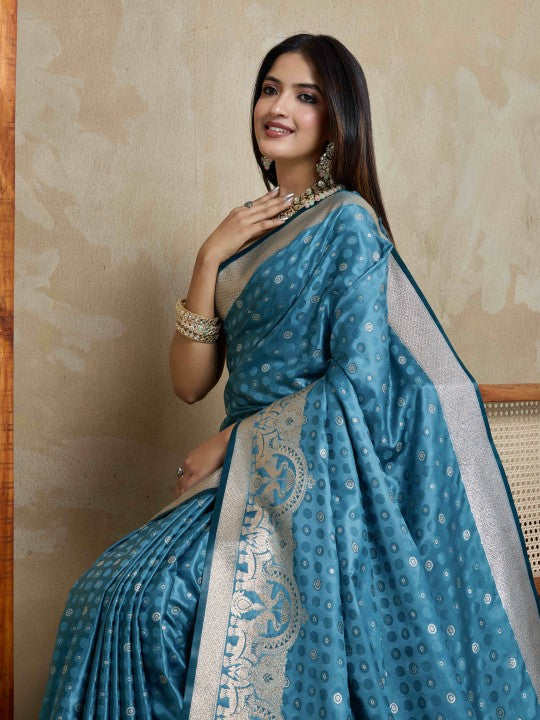 Woven Mysore Satin Saree (Blue)