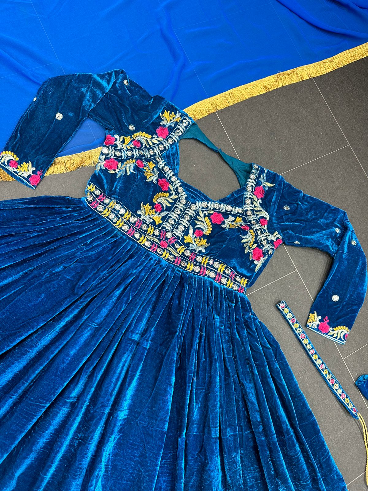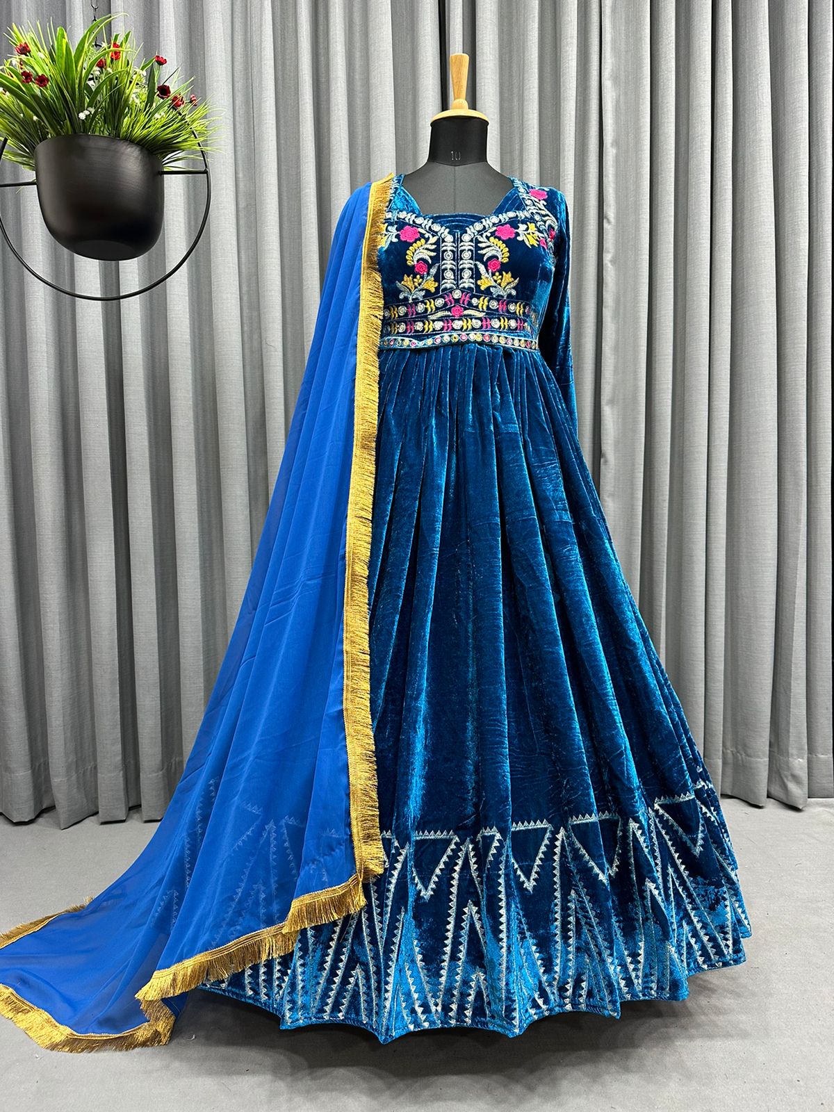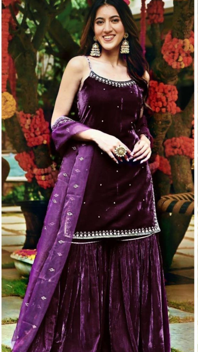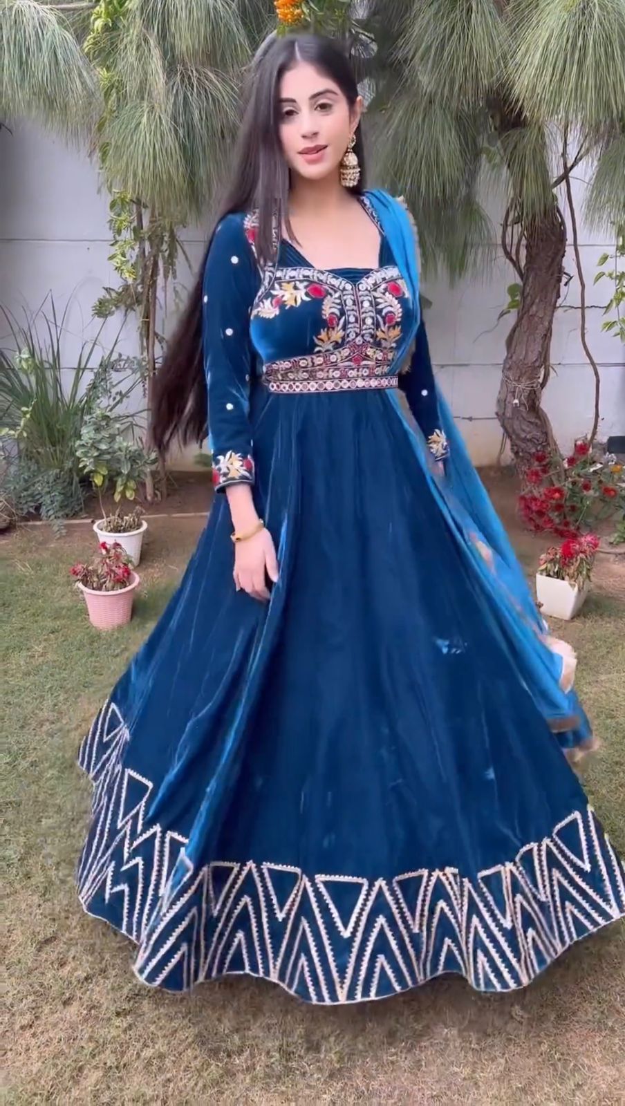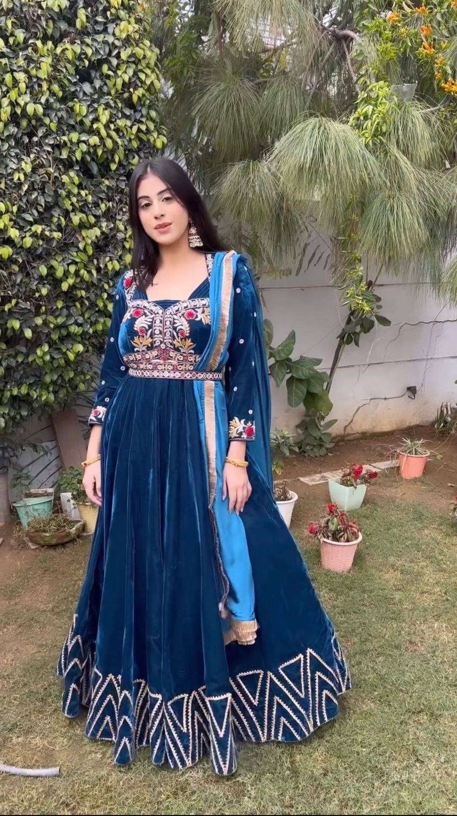 | SUIT | Looking for this same colour beautiful Designer Suit On heavy Velvet fabric with inner and Thread work and Dupatta on Faux Georgette Fabric with Fancy Lace |