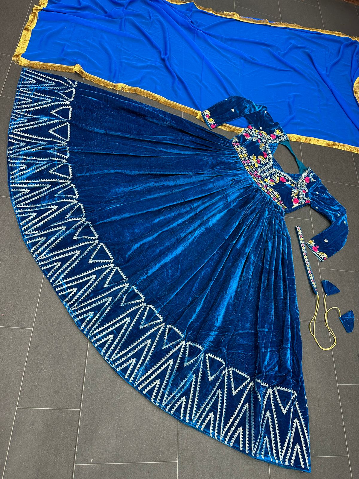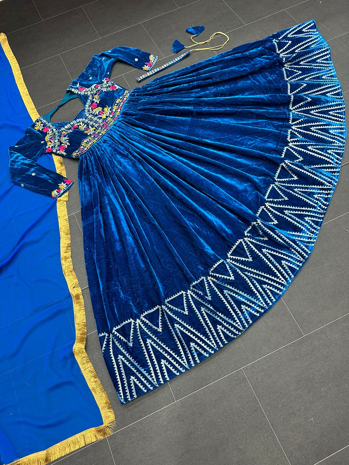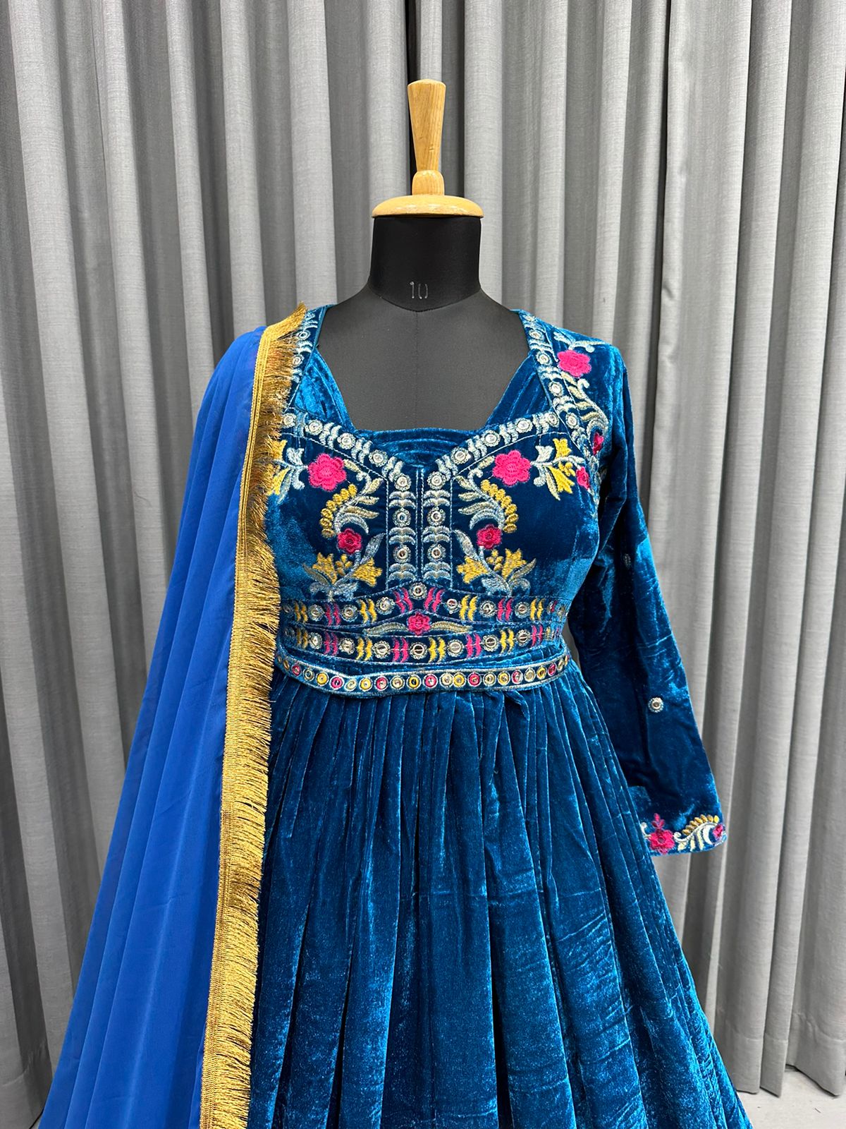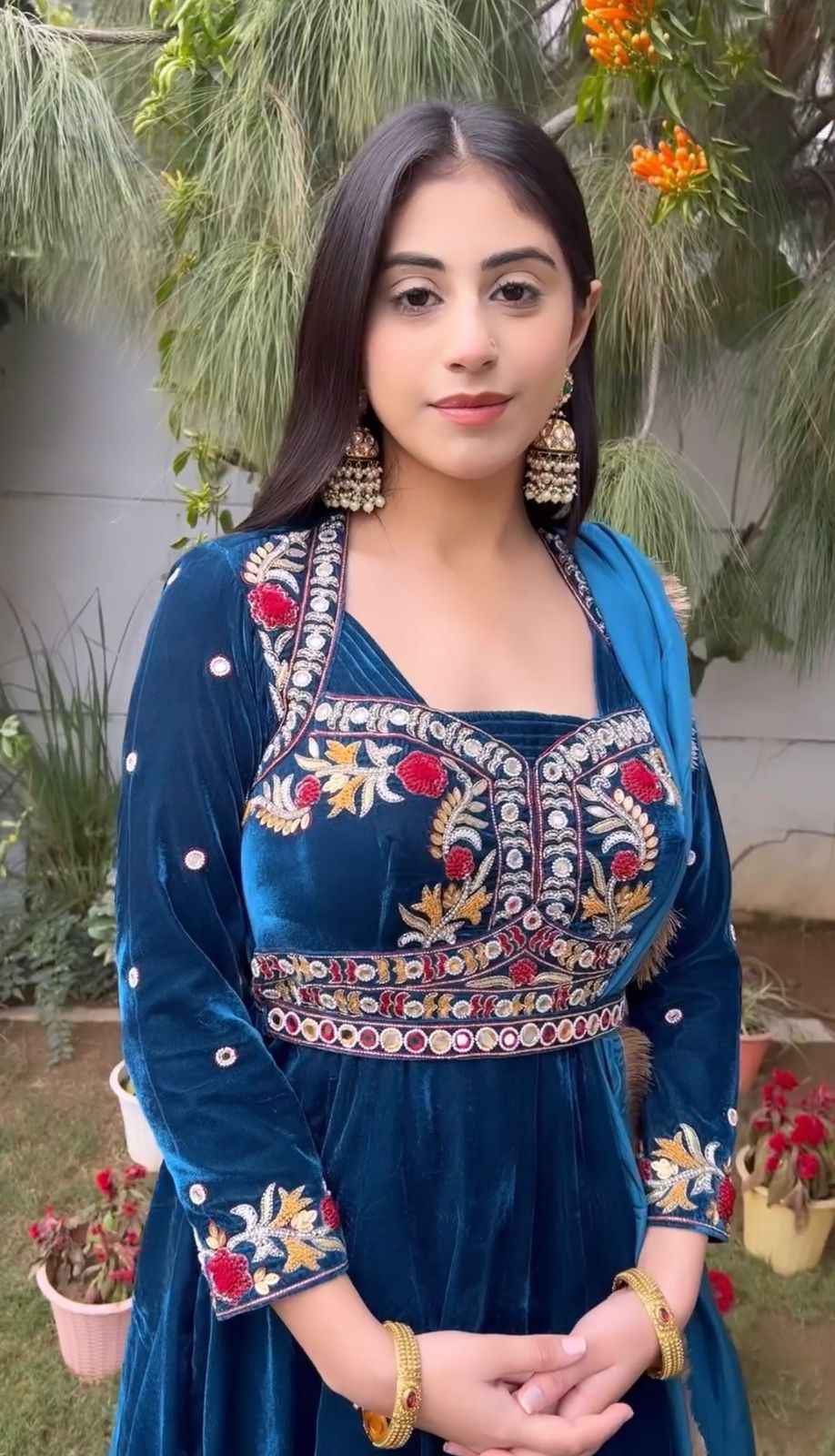 | SUIT | Looking for this same colour beautiful Designer Suit On heavy Velvet fabric with inner and Thread work and Dupatta on Faux Georgette Fabric with Fancy Lace |