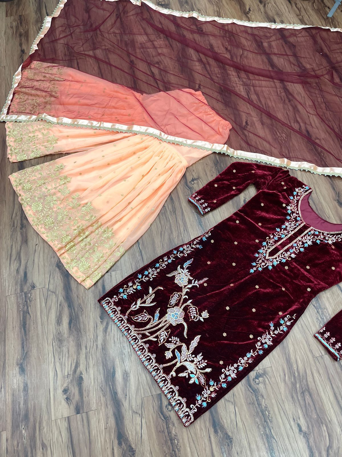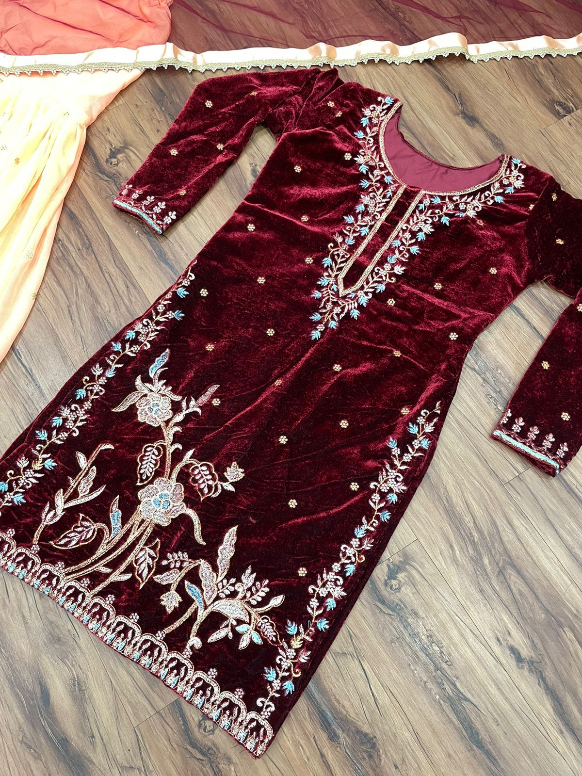 FABRIC :- Heavy Velvet Size :- Up to 42 (Full-Stitched) |