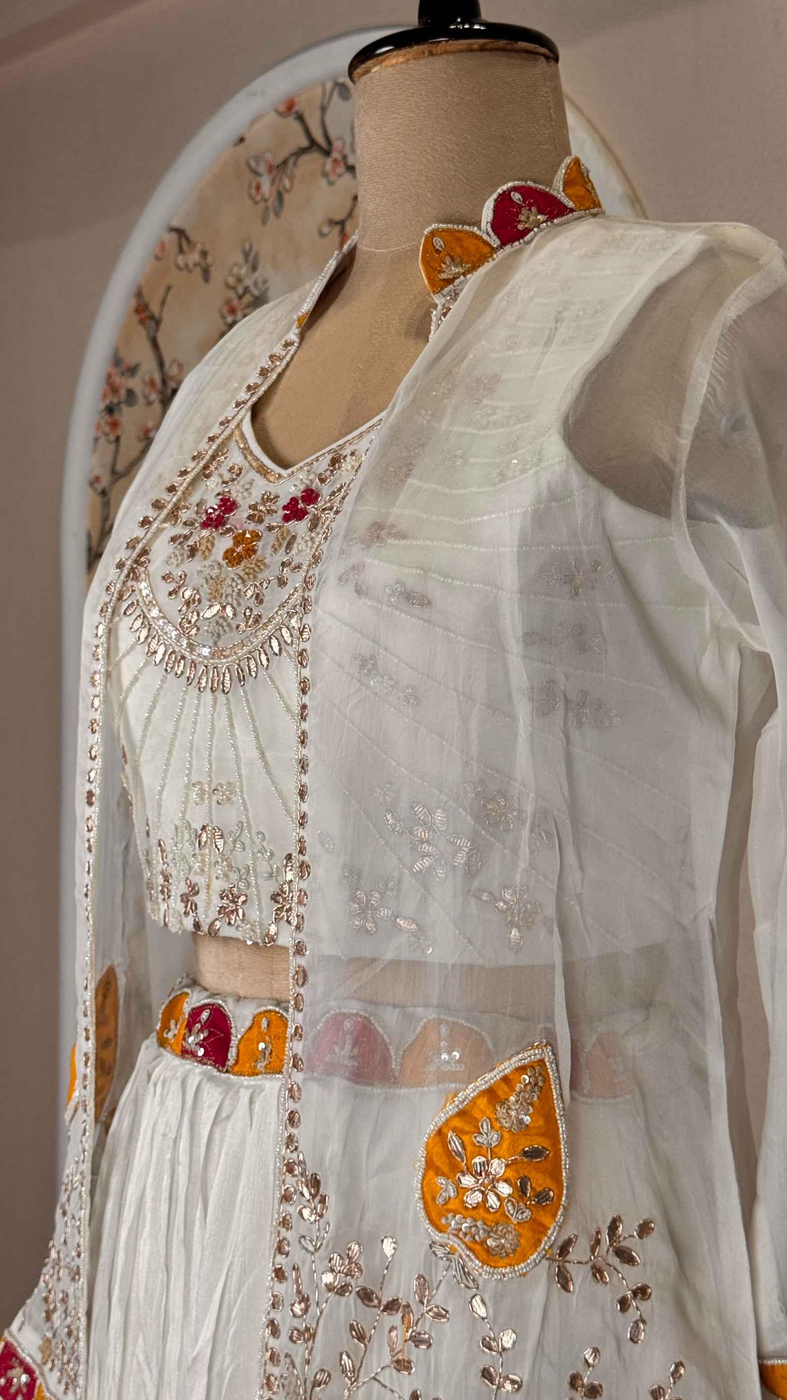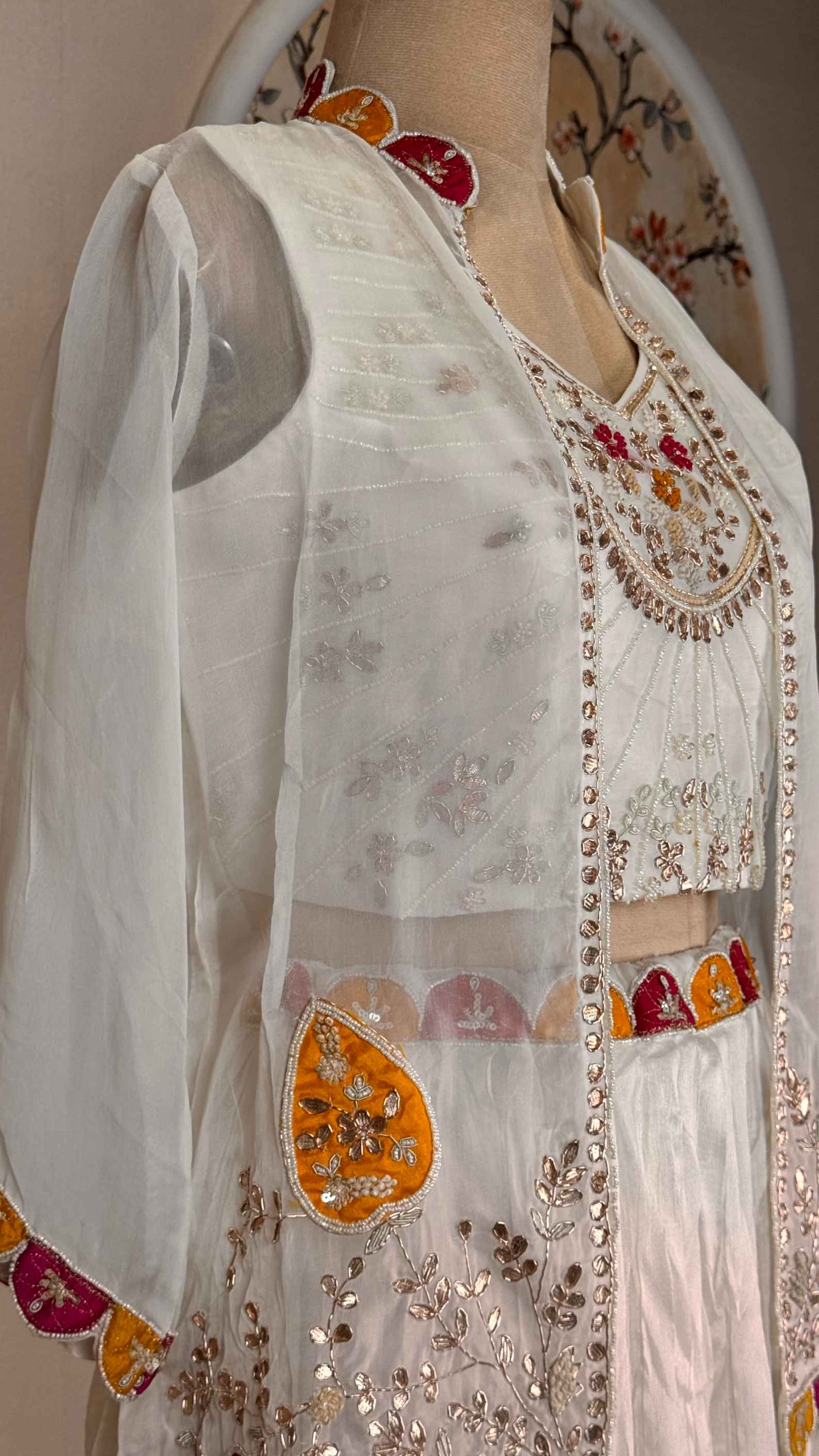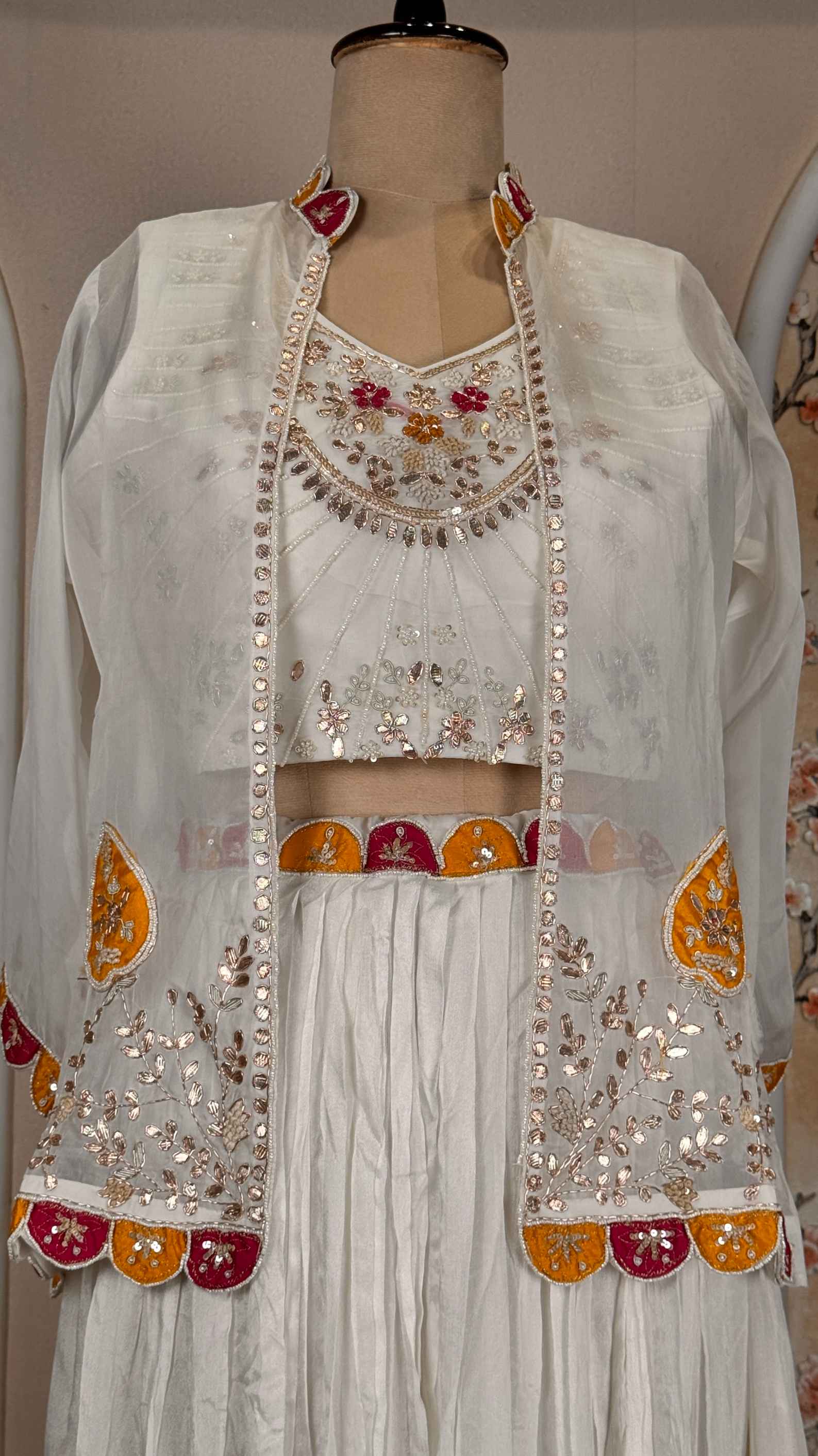 - Jacket Work: Beautiful handcrafted Cutdana beats and thread with Zardosi Work