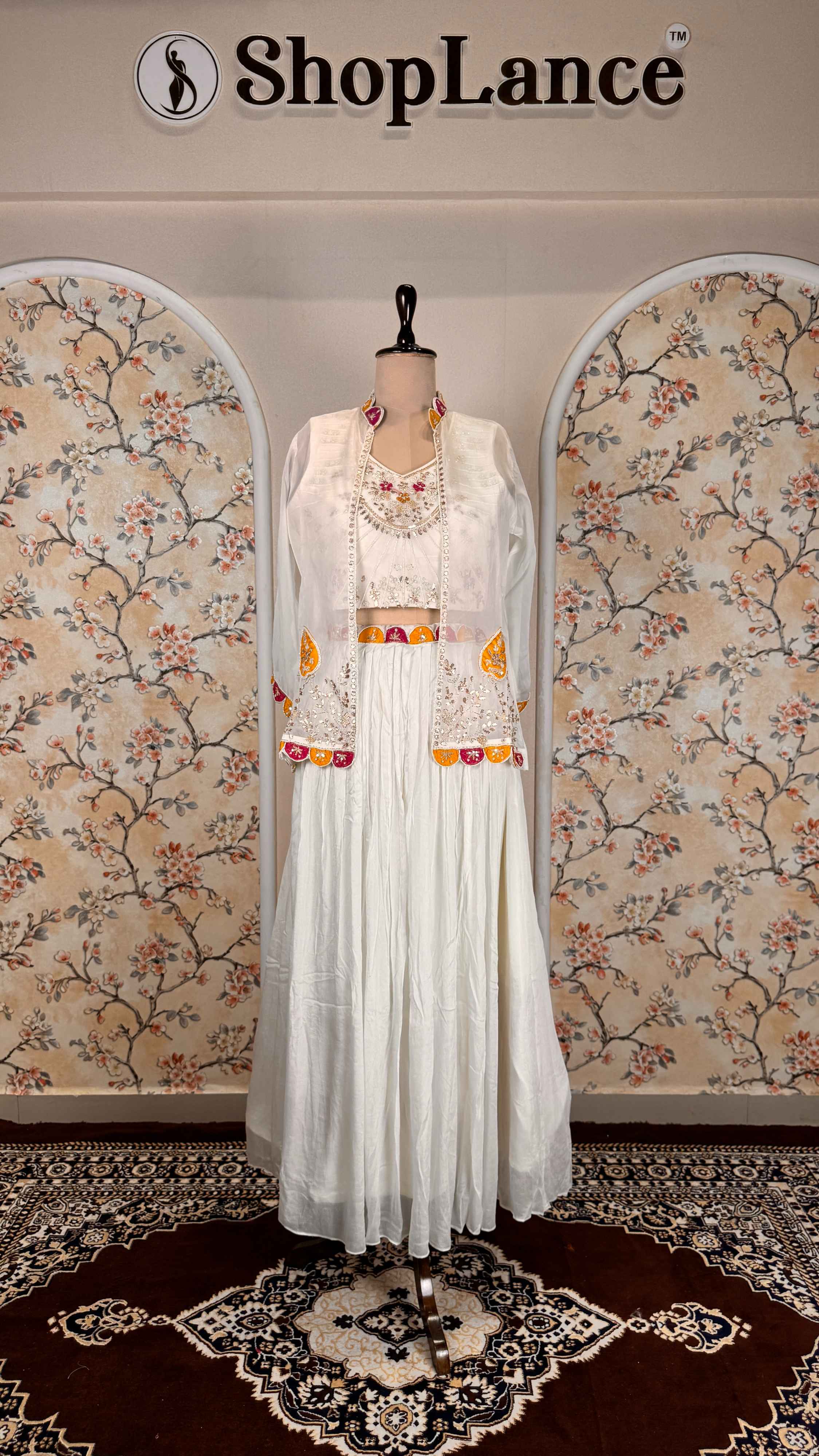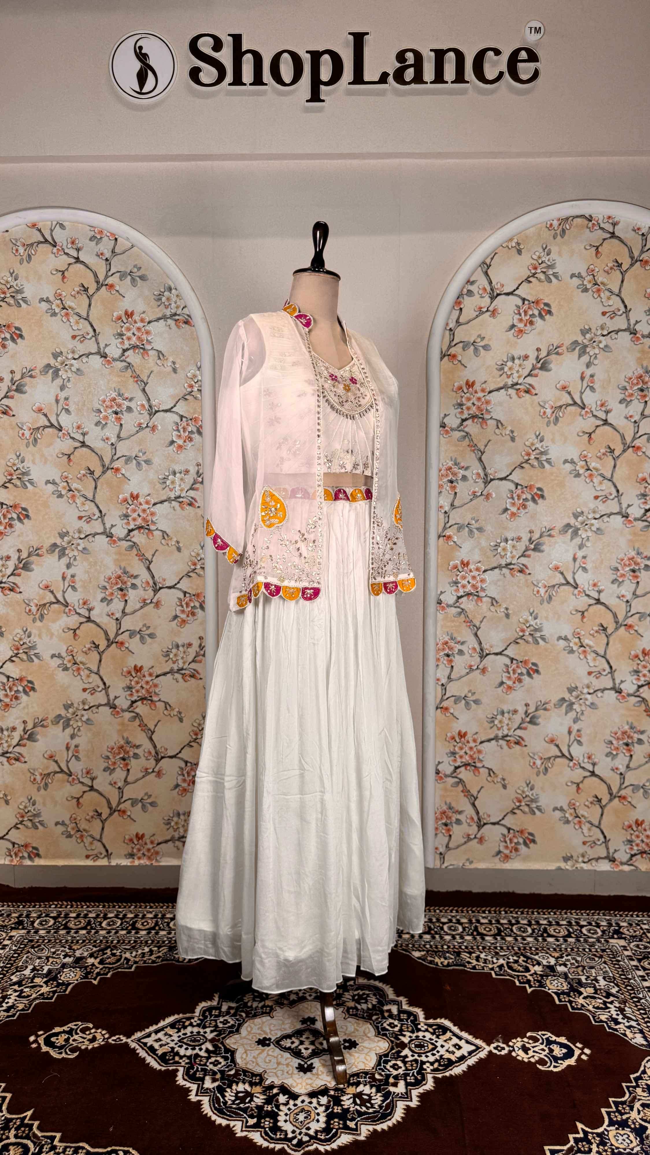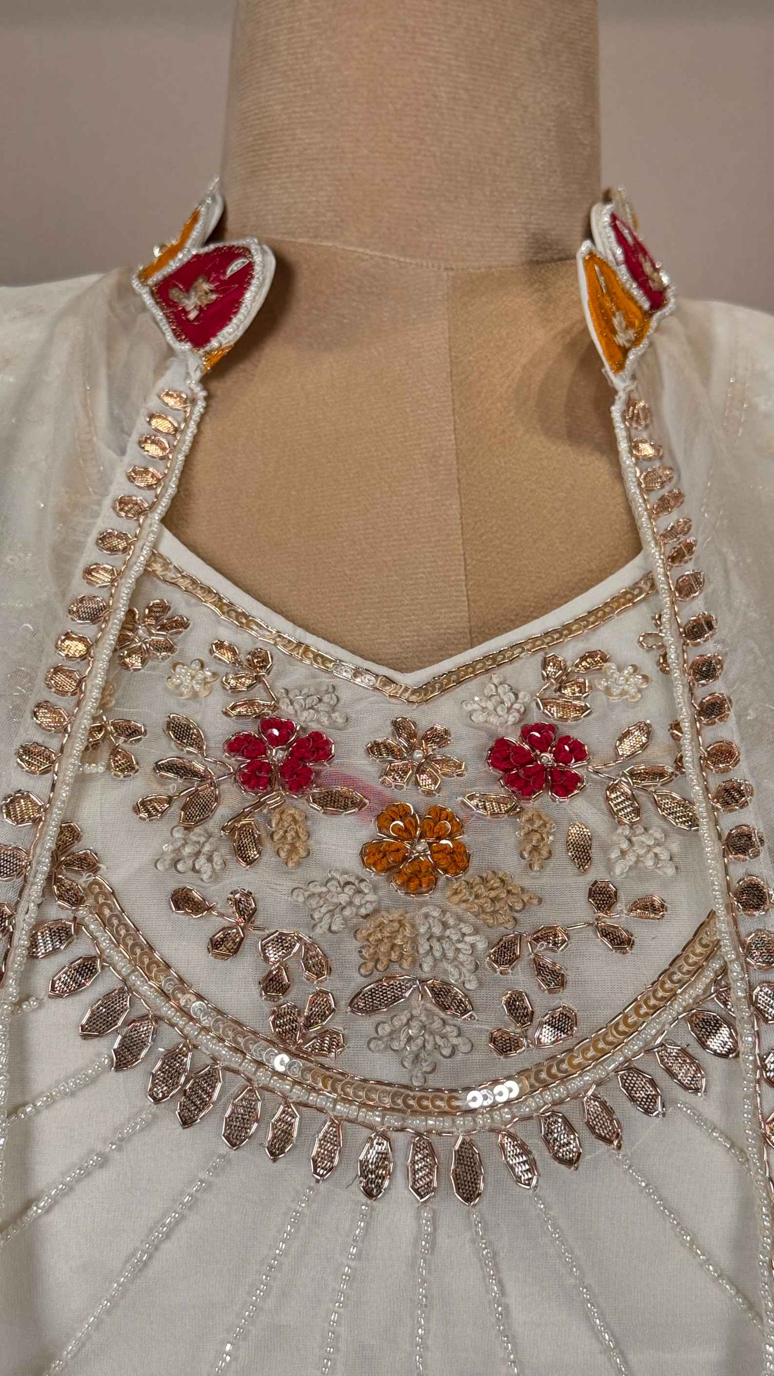 - Jacket Work: Beautiful handcrafted Cutdana beats and thread with Zardosi Work