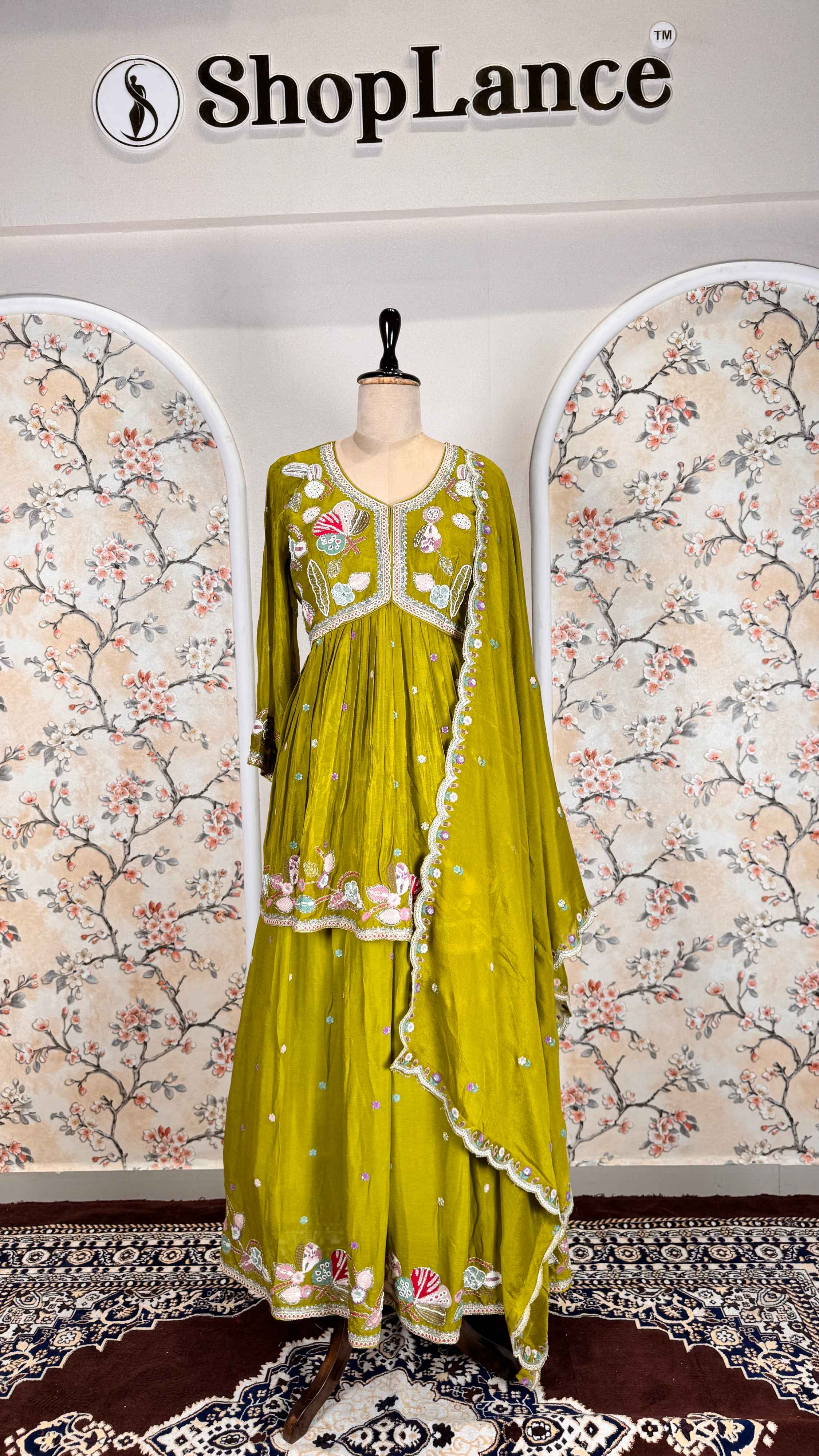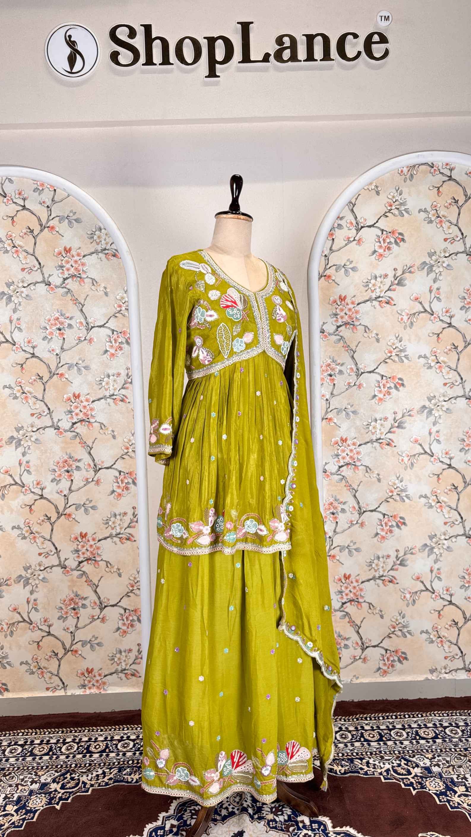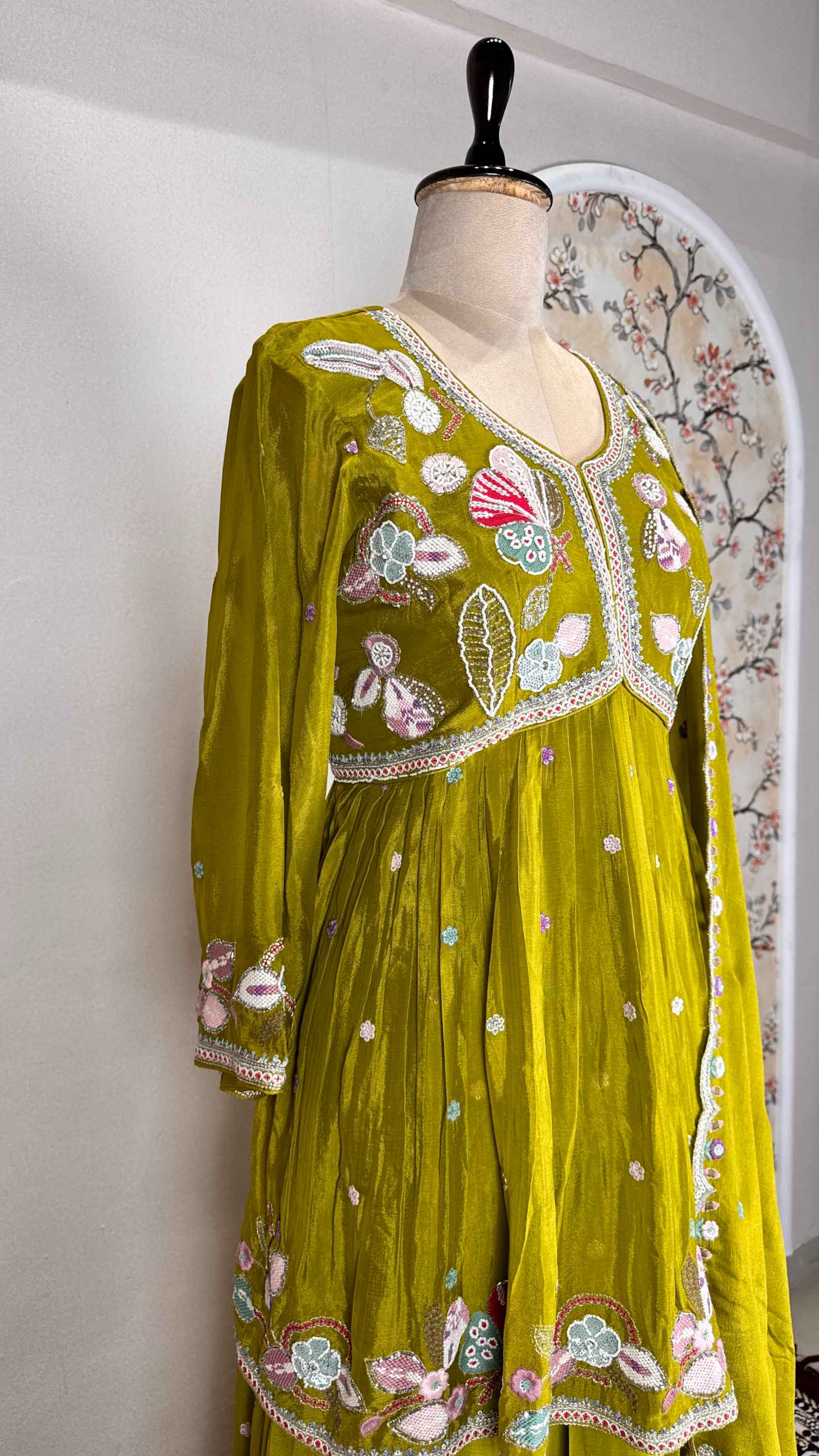- Jacket Work: Complete borderline Beautiful handcrafted Cutdana beats and floral Work