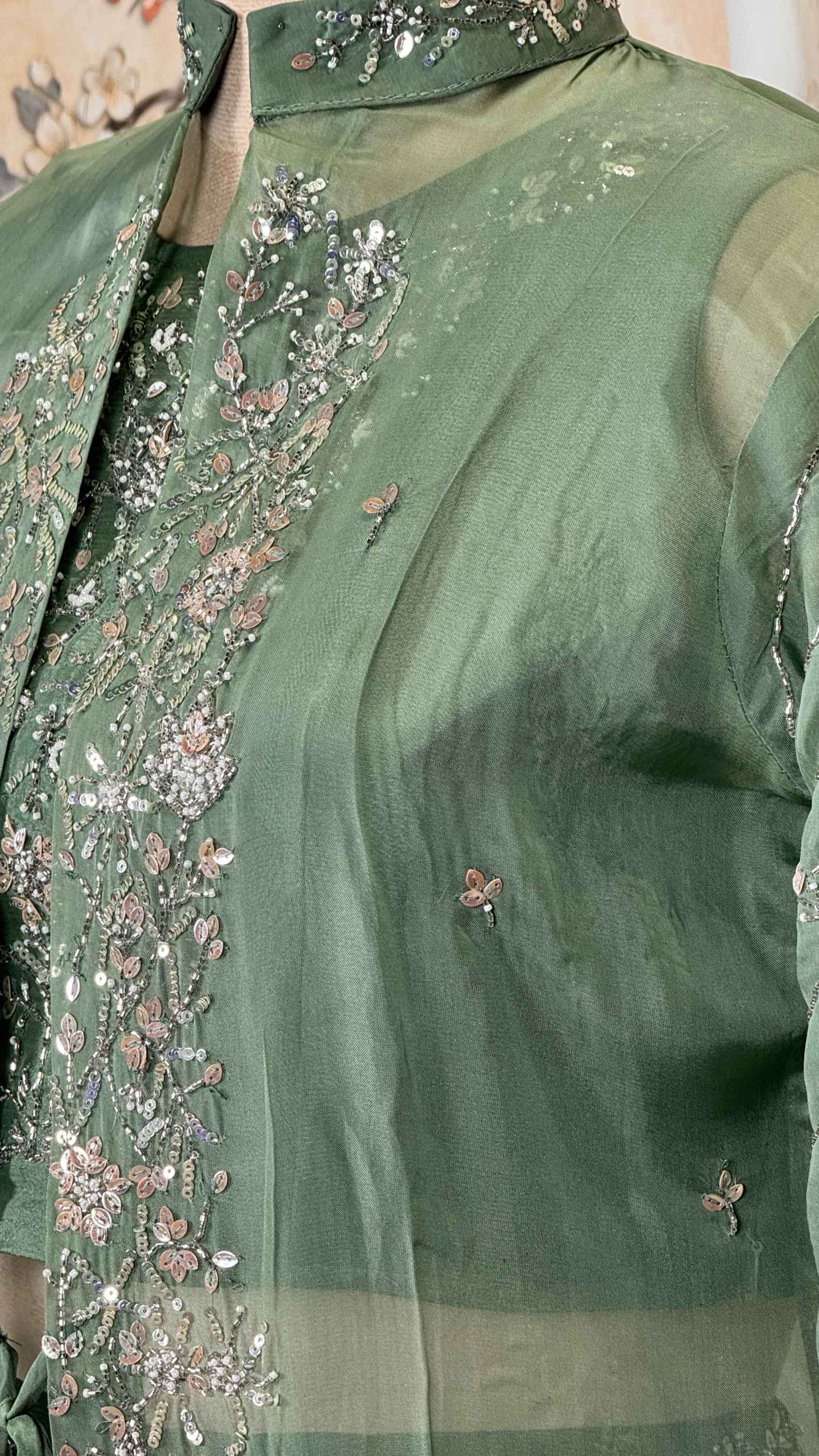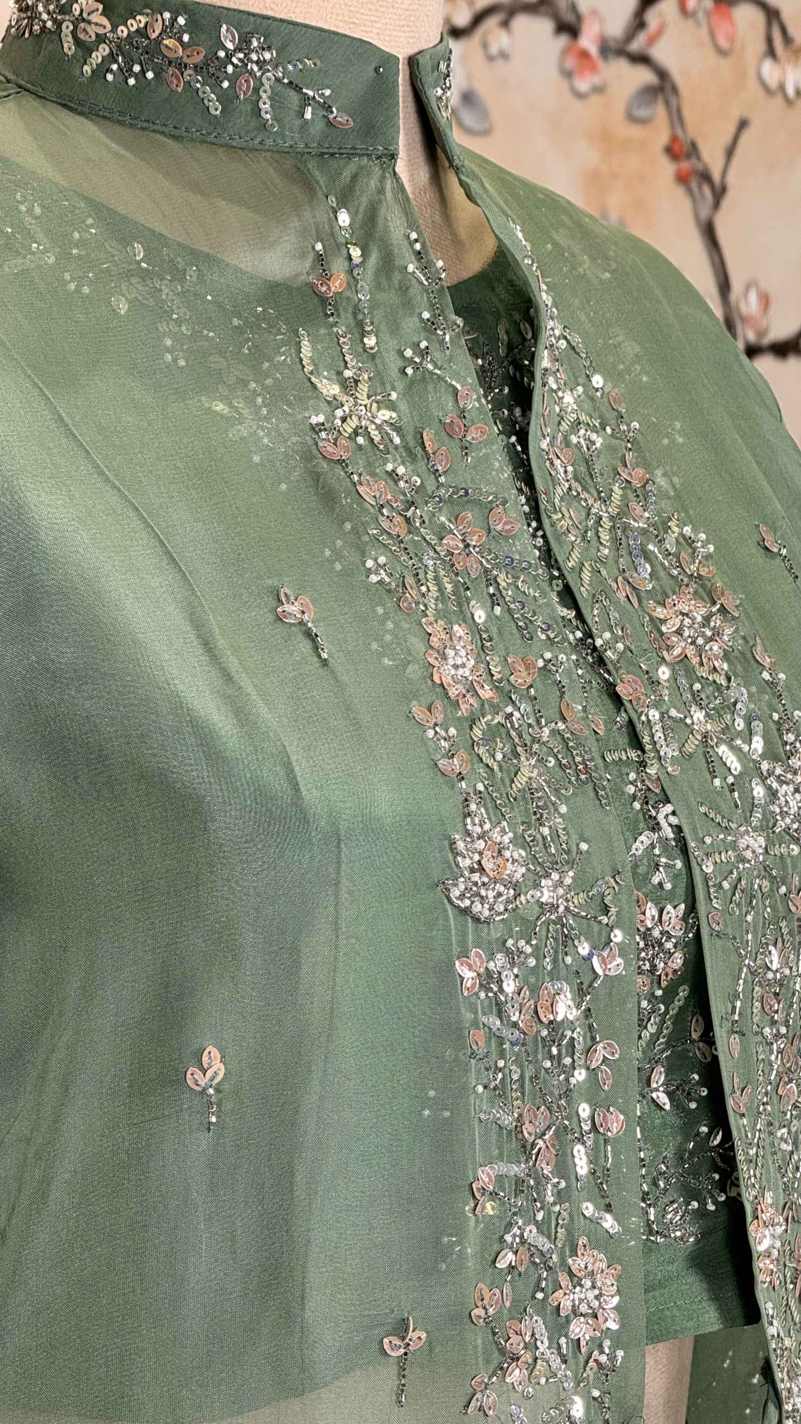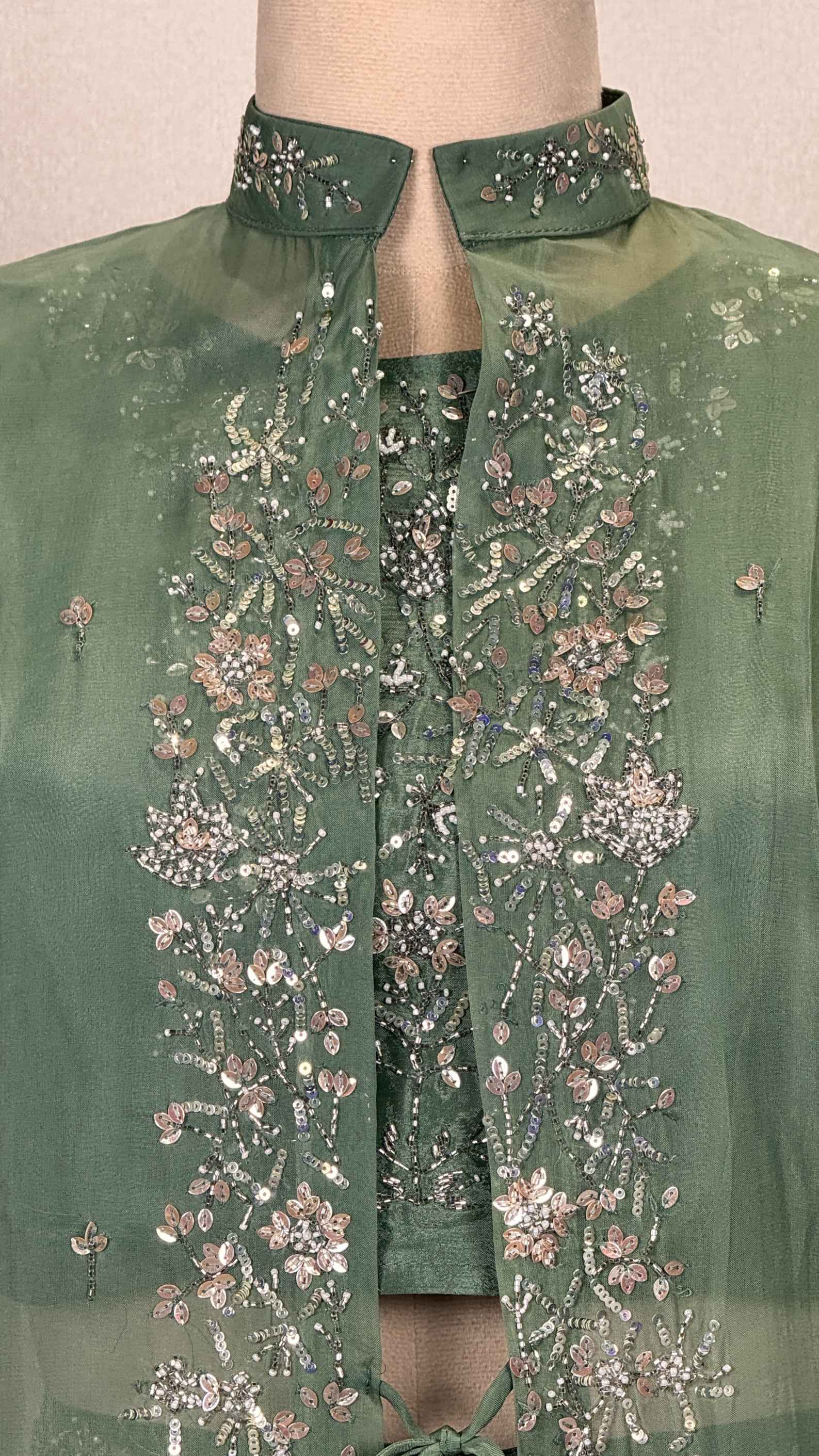 - Jacket Work: Complete borderline Beautiful handcrafted Cutdana beats Work