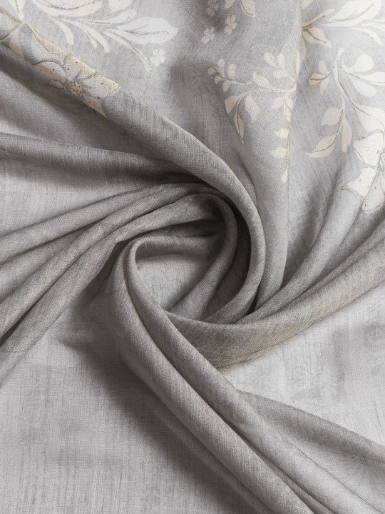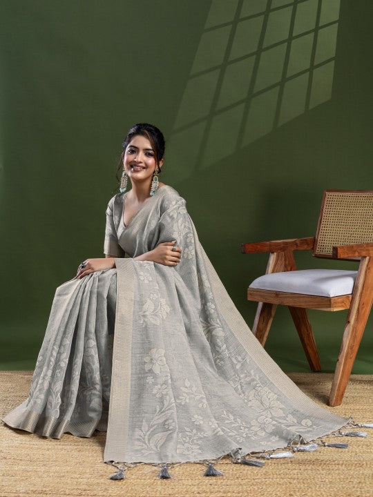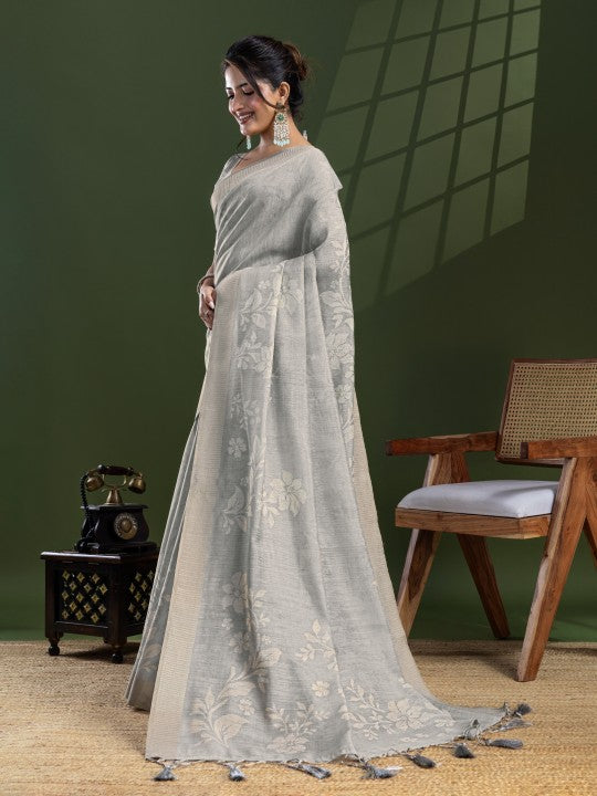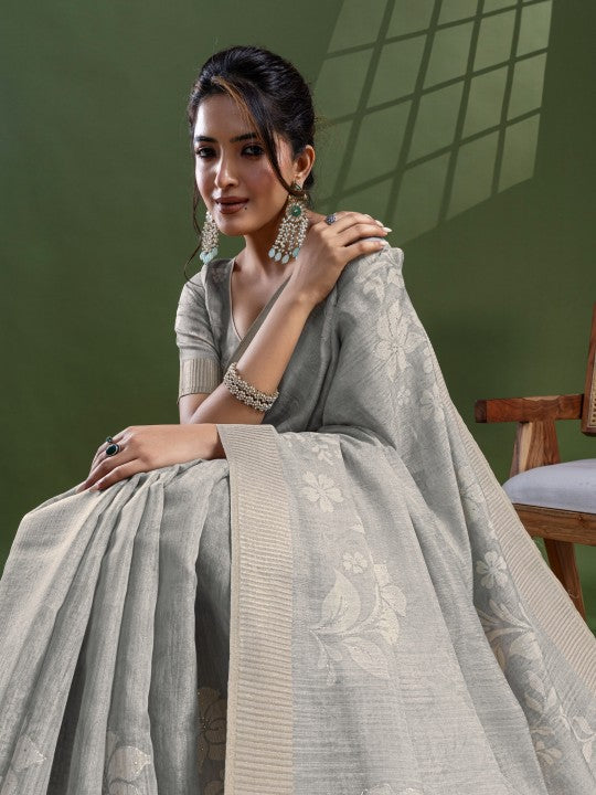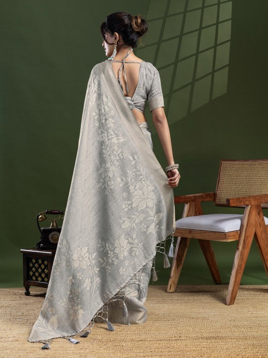 Woven::Floral Print Bollywood Tissue Saree (Grey)