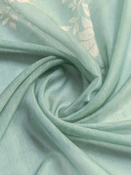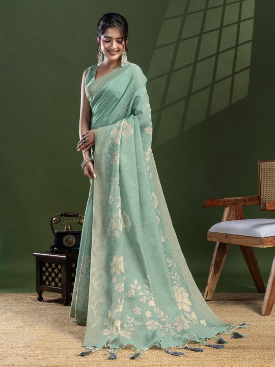 Woven::Floral Print Bollywood Tissue Saree (Green)