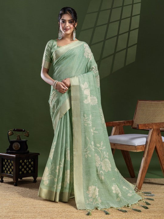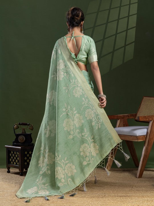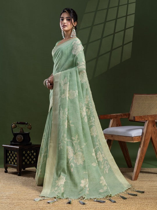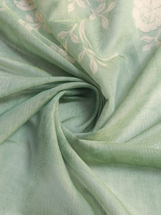 Floral Print::Printed Bollywood Tissue Saree (Green)