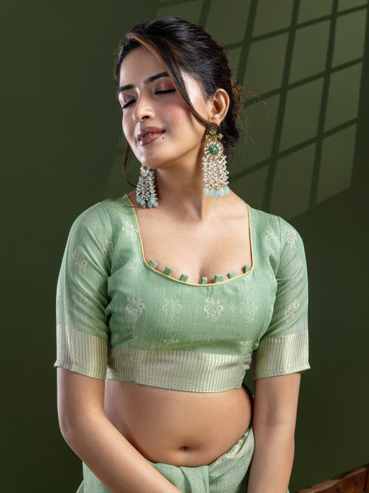 • Floral Print::Printed Bollywood Tissue Saree (Green)