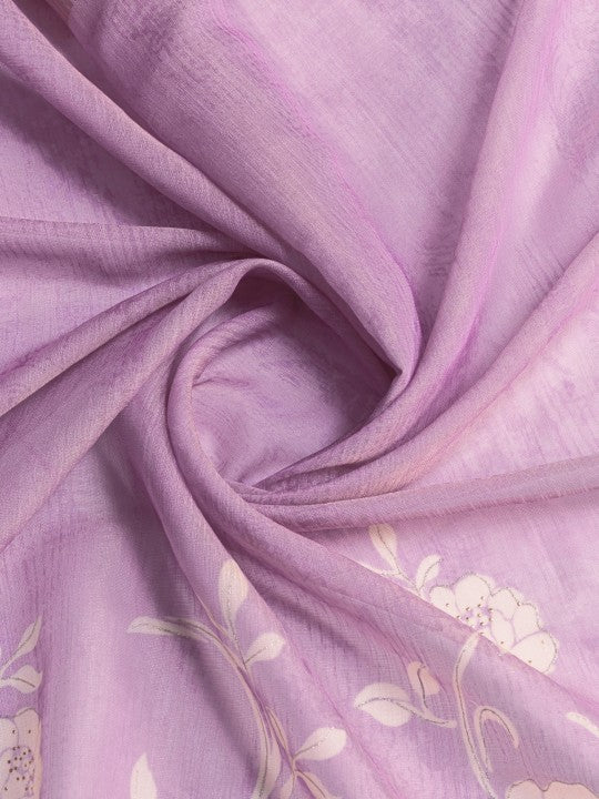 Floral Print::Printed Bollywood Tissue Saree (Purple)