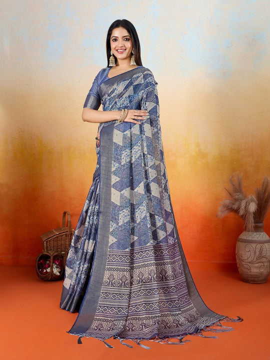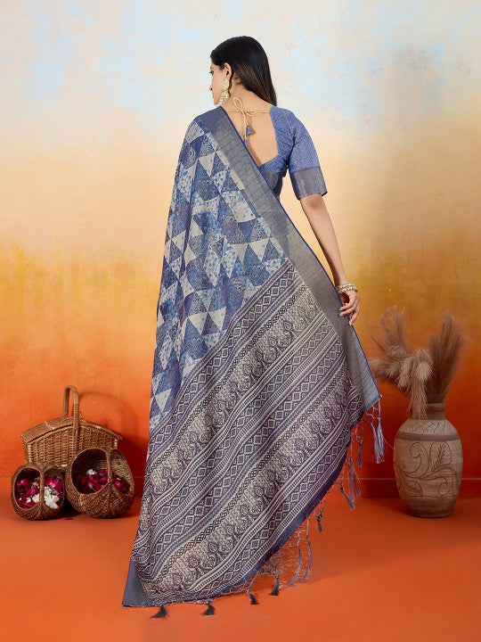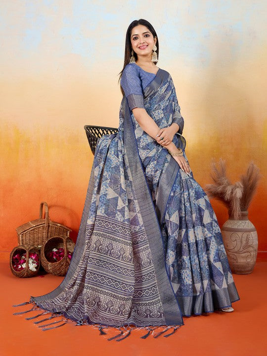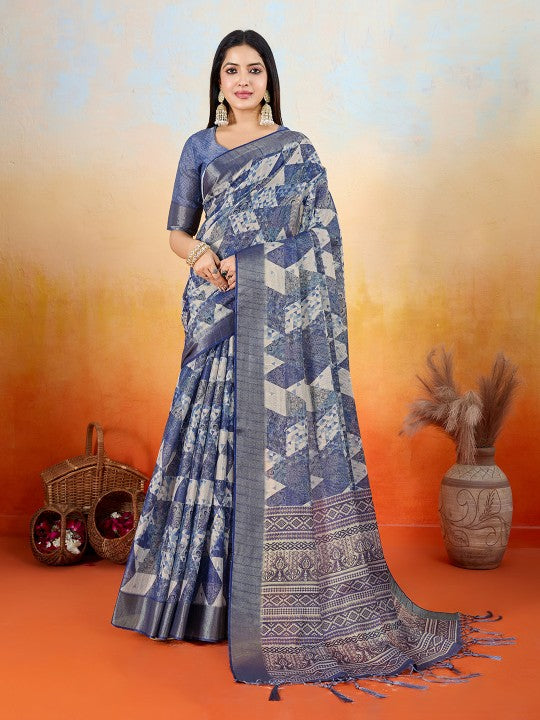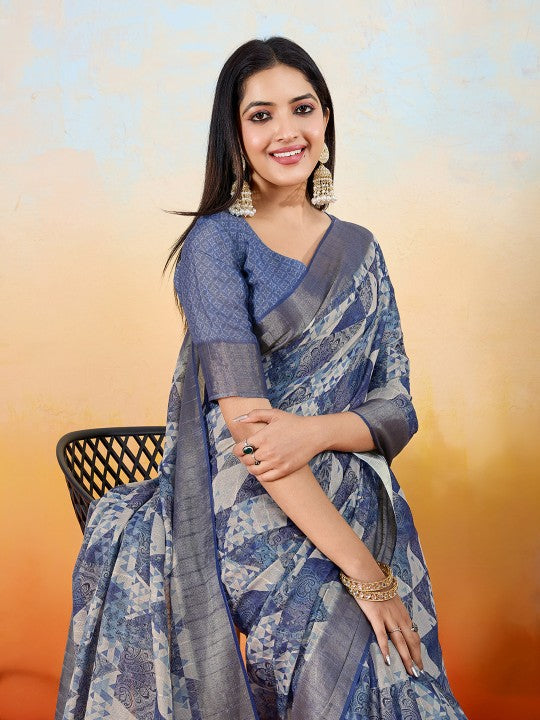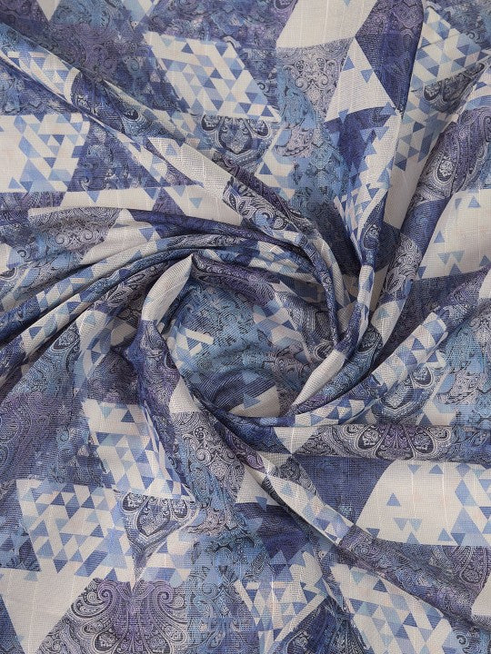 Woven::Geometric Print Bollywood Tissue (Blue)