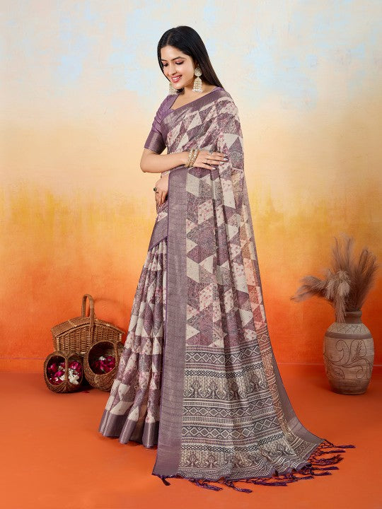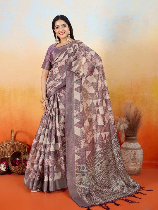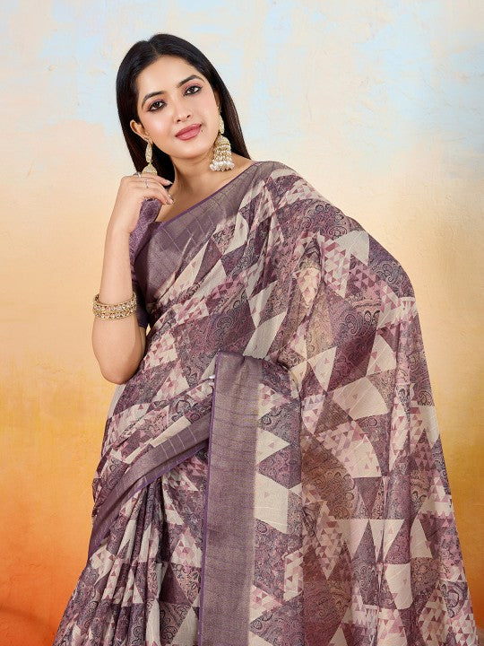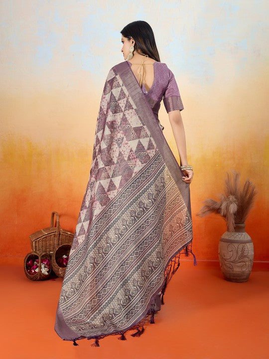 Woven::Geometric Print Bollywood Tissue (Purple)
