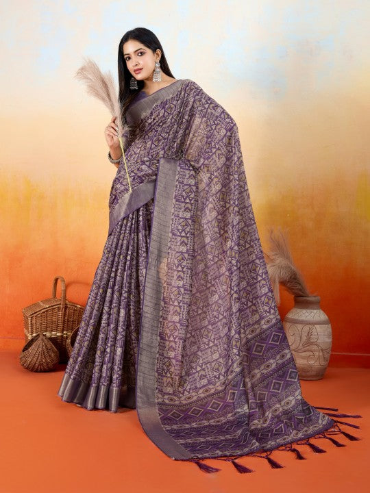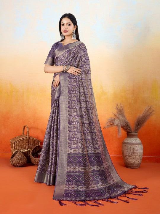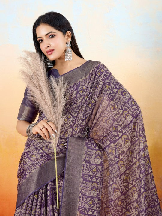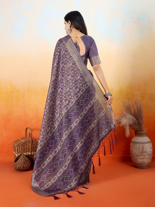 Geometric Print::Woven Ikkat Tissue (Purple)