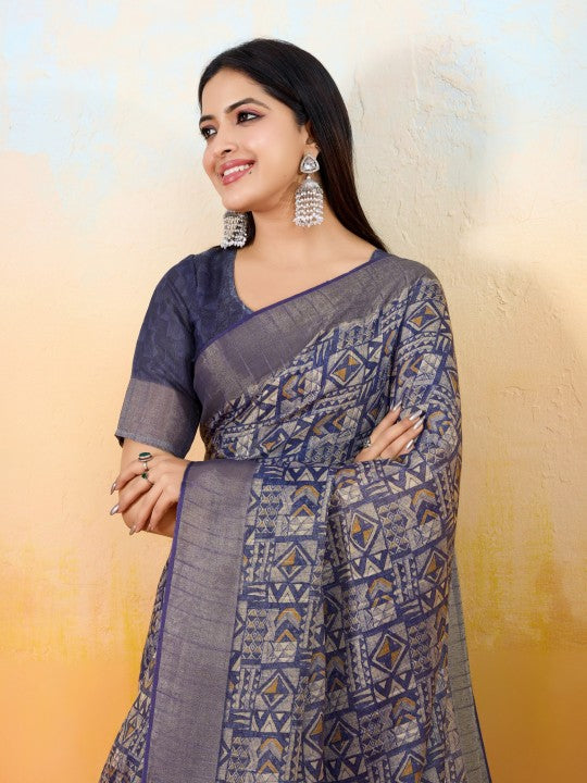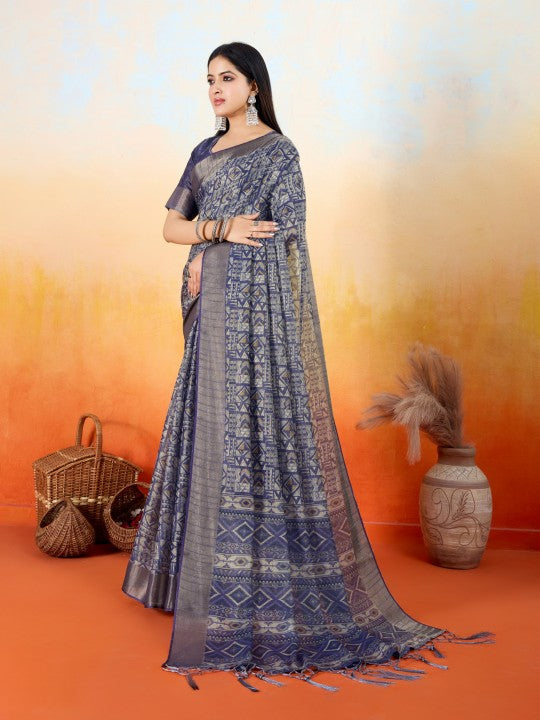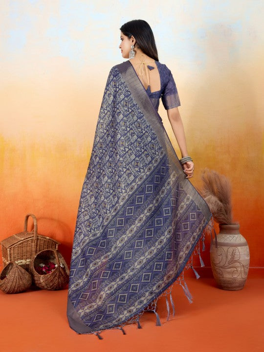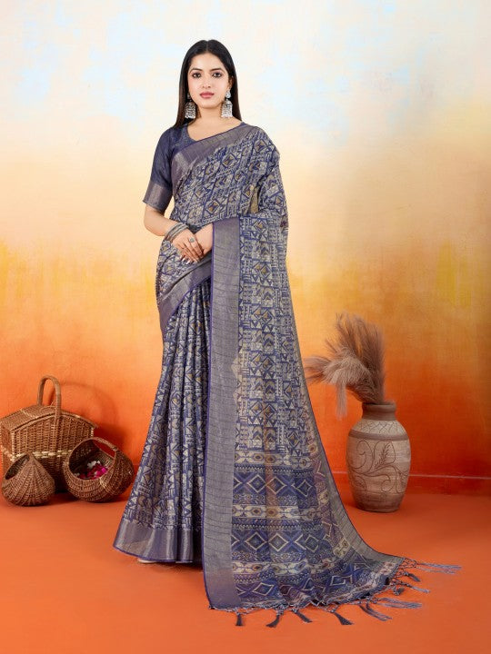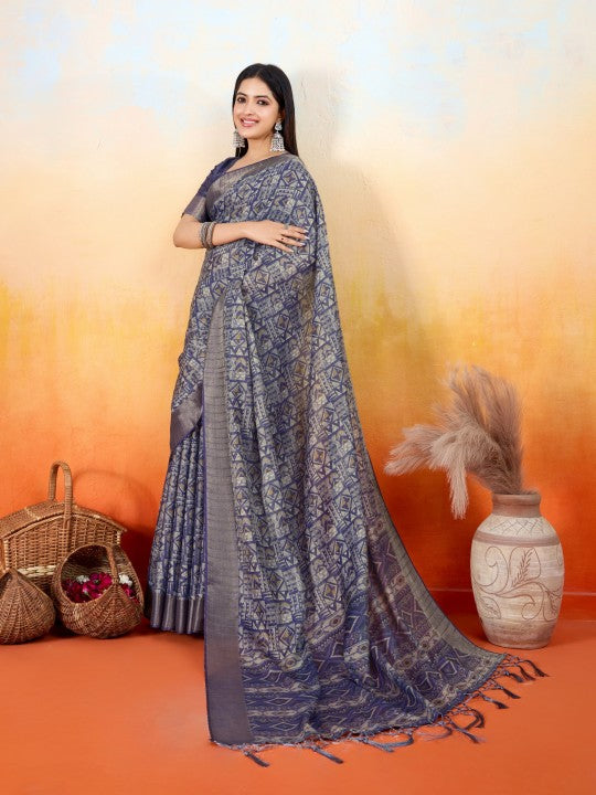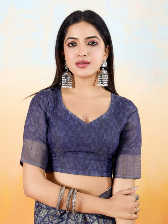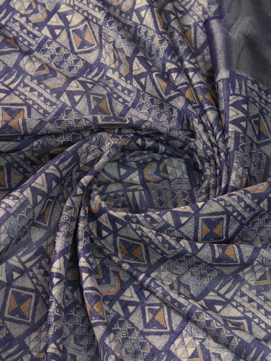 Geometric Print::Woven Ikkat Tissue (Blue)