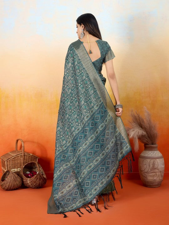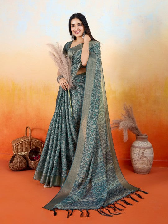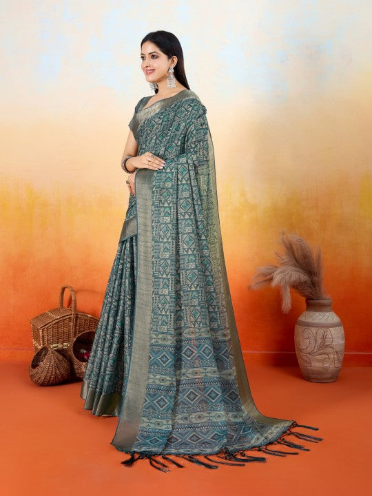 - Saree Work:Geometric Print::Woven