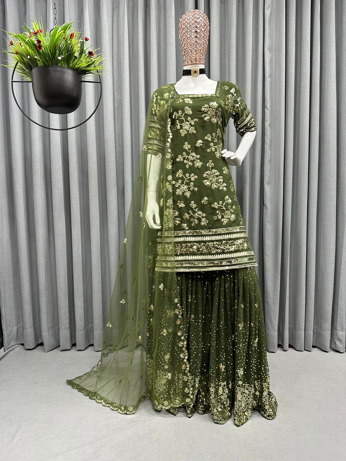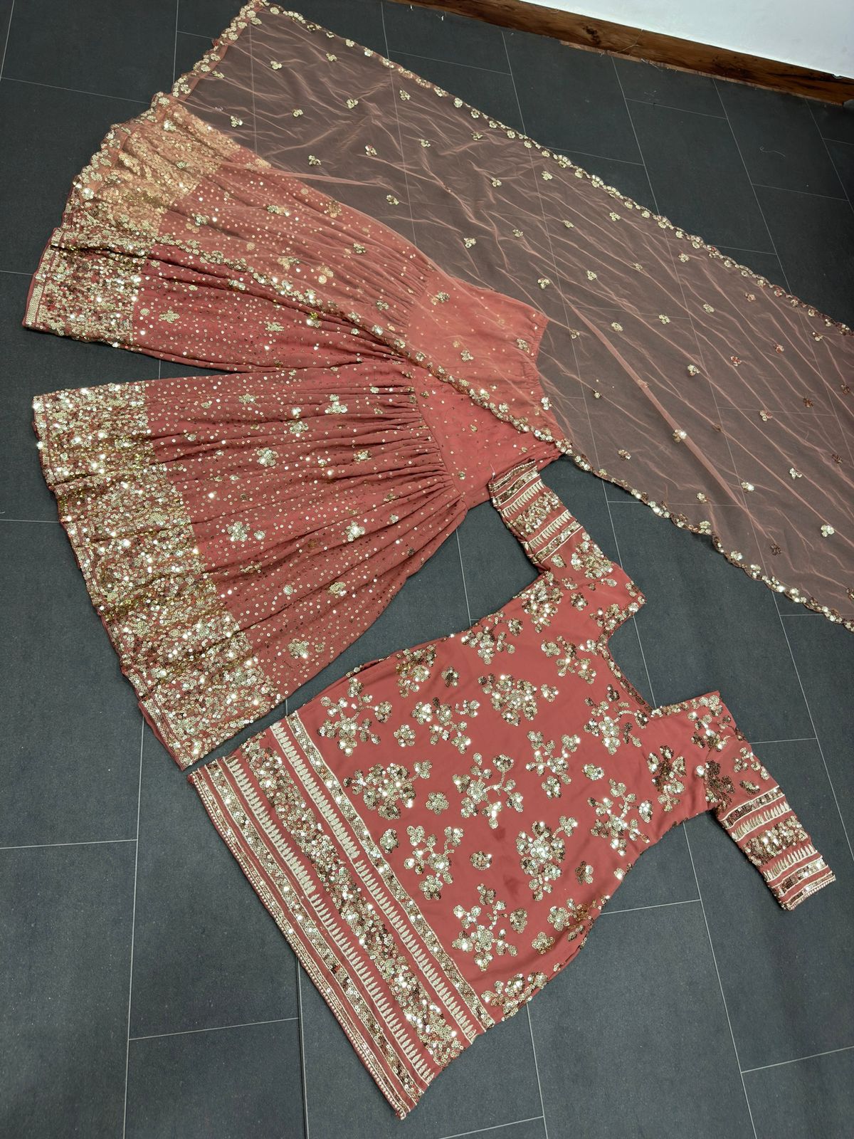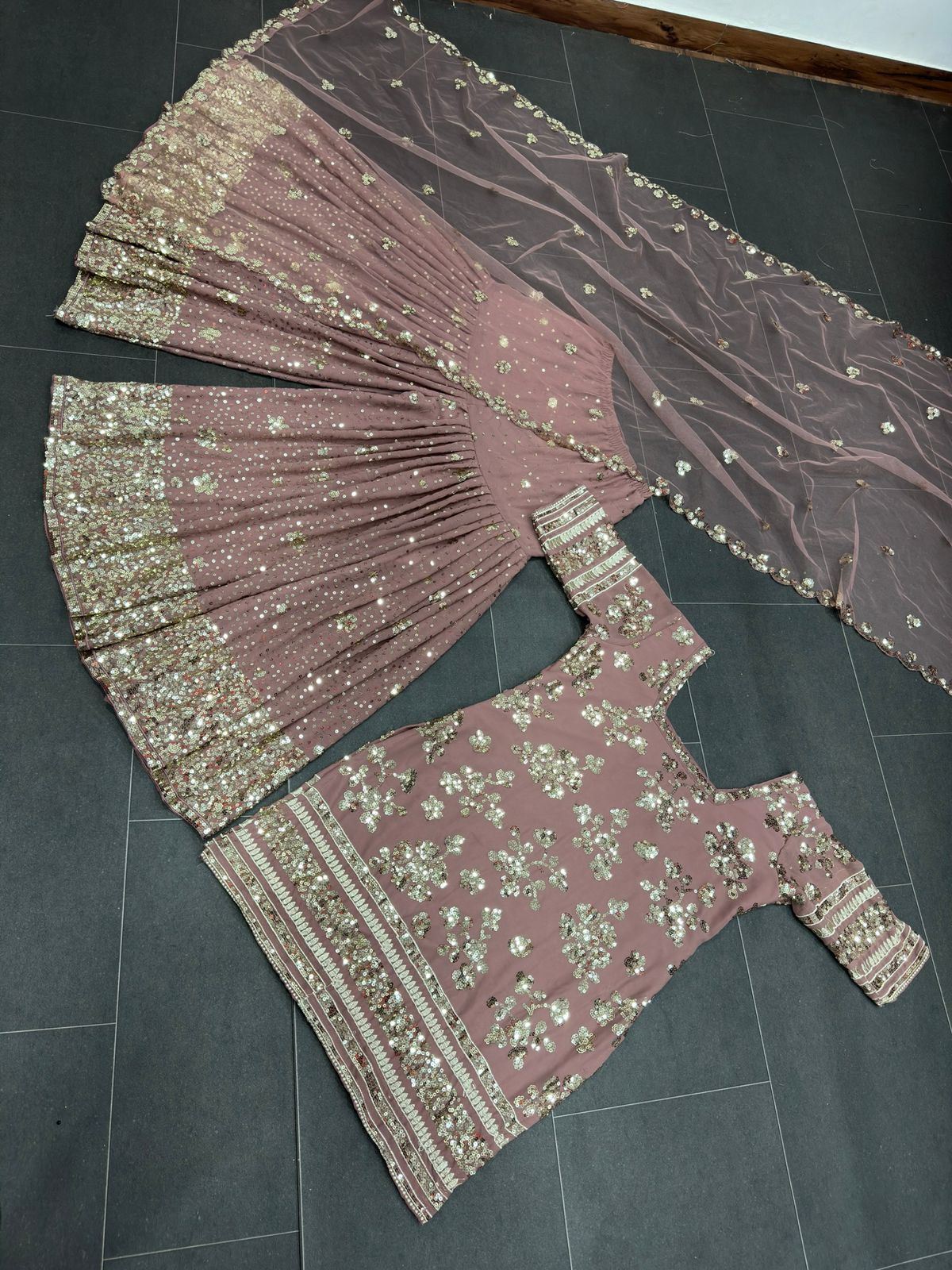 | Sharara | Fabric. :-Georgette with inner Work :- Thread with Sequce work Size. :- Free (Full stitched with elastic)