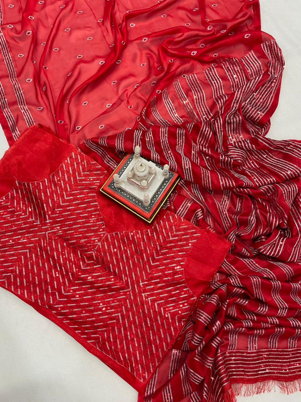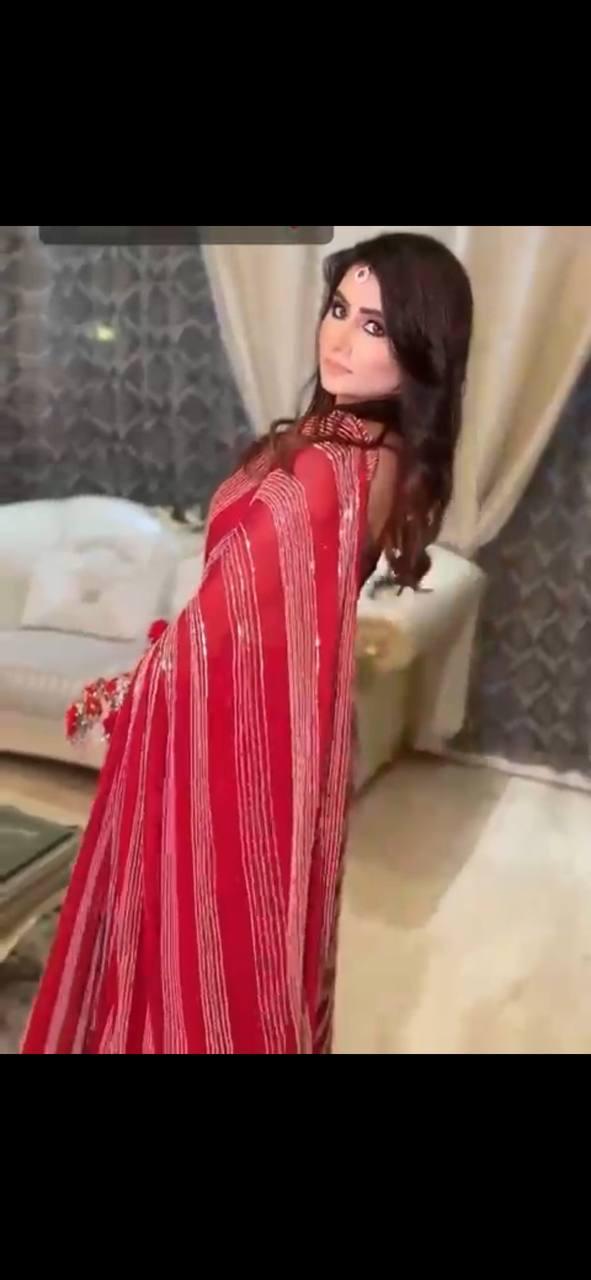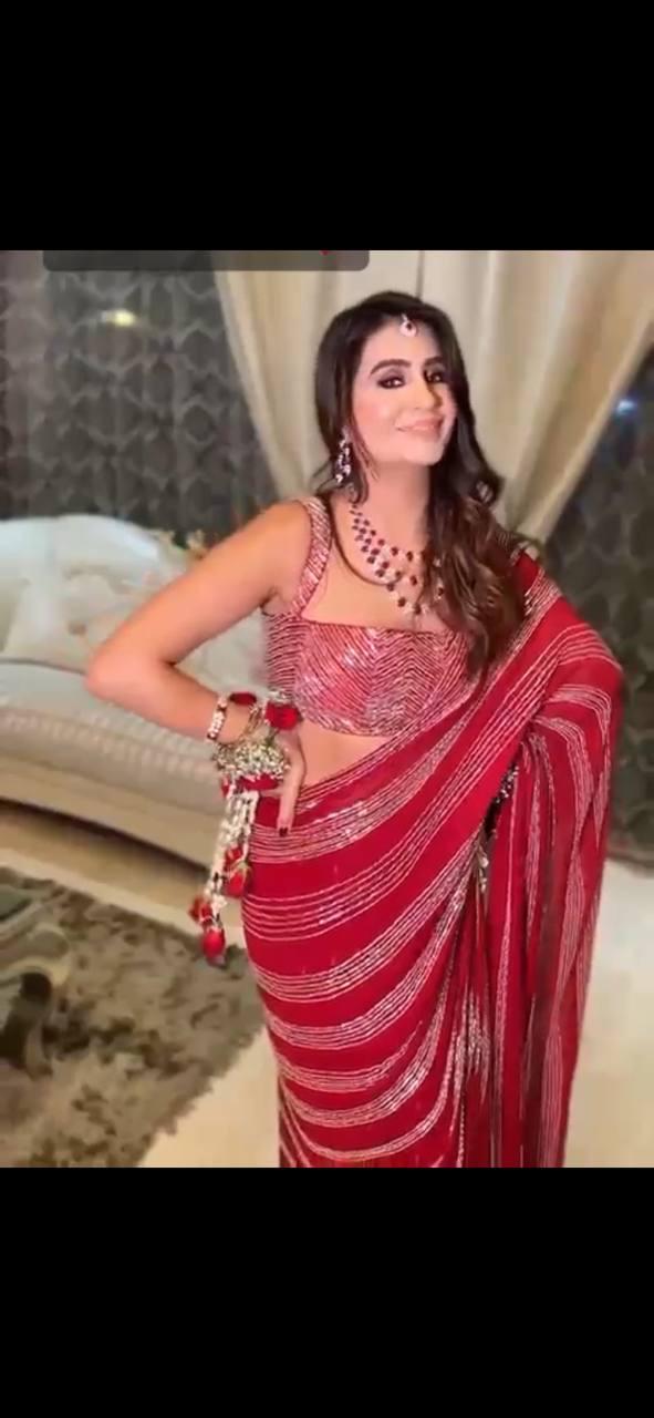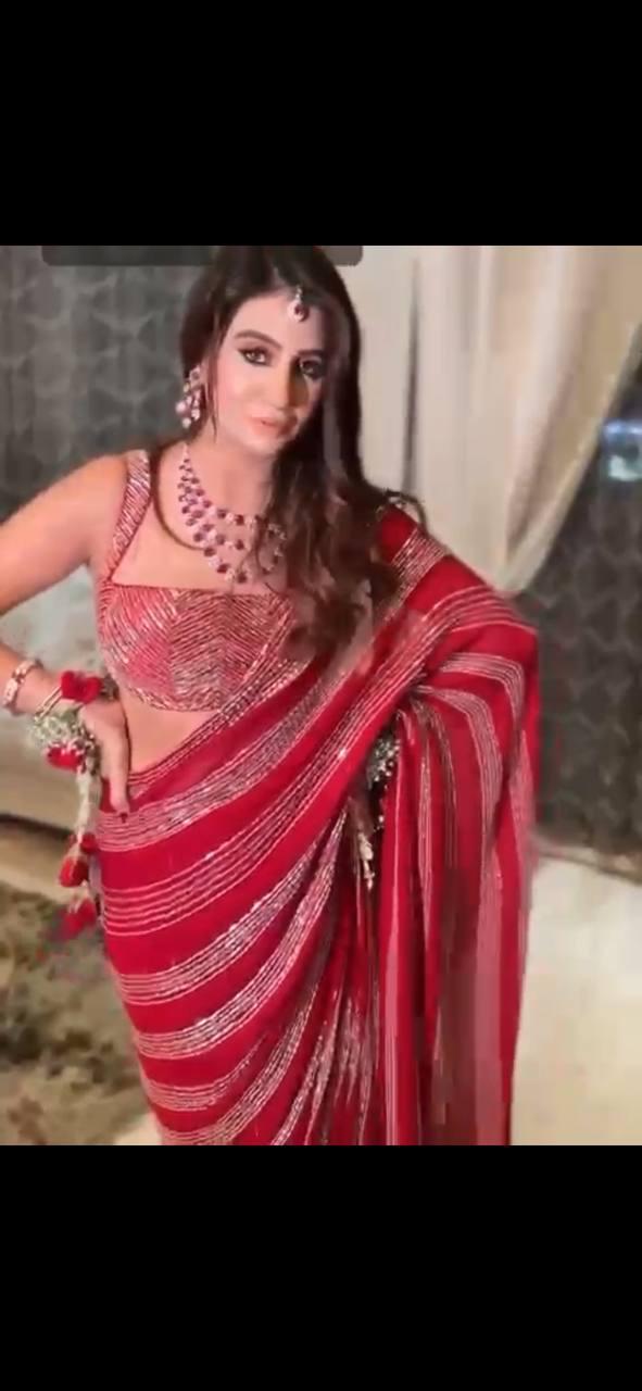 | WORK | Fabric :- Premium georgette work :- 5 Mm sequence work with mirror lace border |