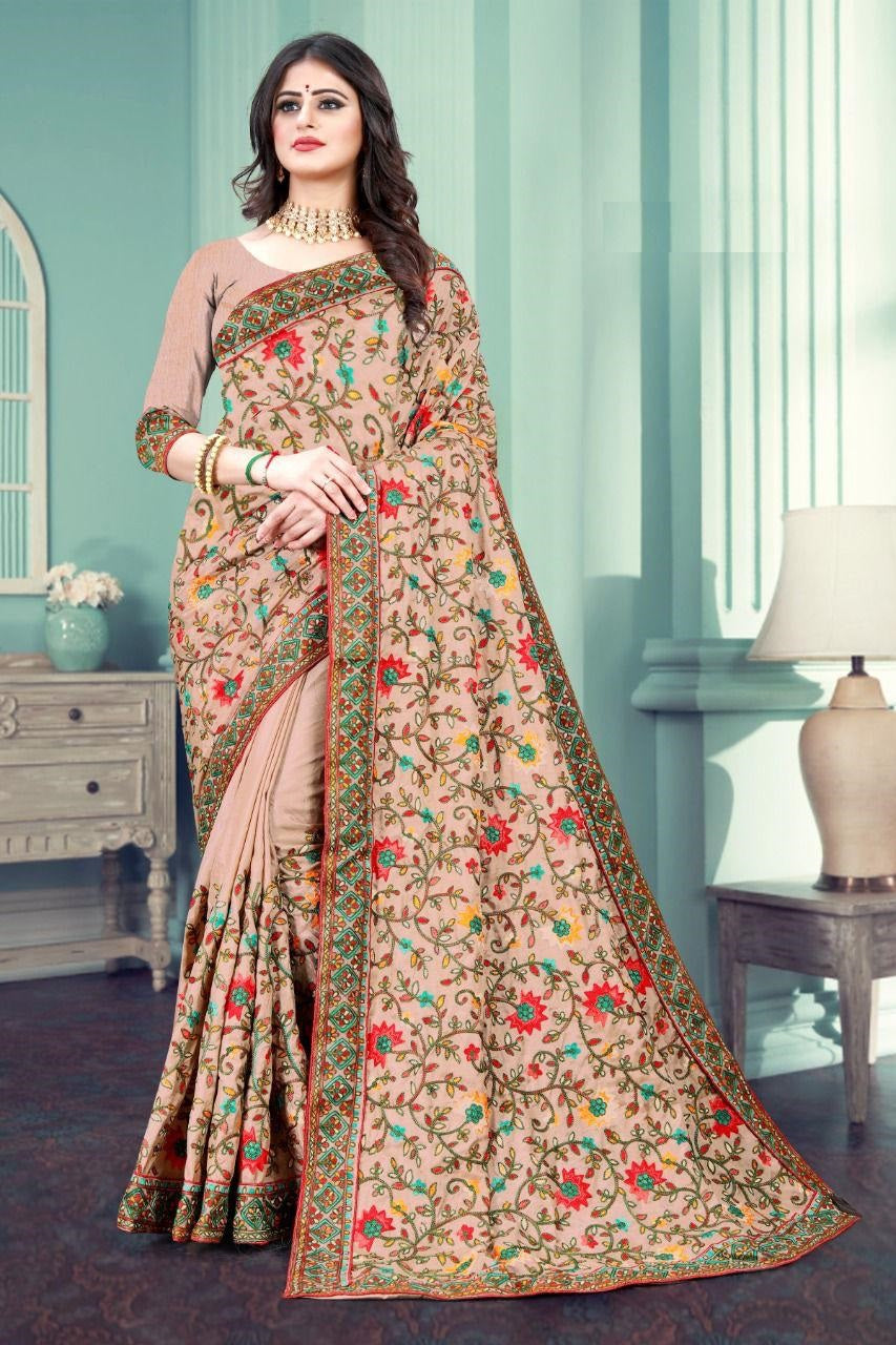 | WORK | Fabric :- HEAVY RANGOLI SILK Work :- 3mm SEQUINS & COTTON THREAD EMBROIDERY WORK |