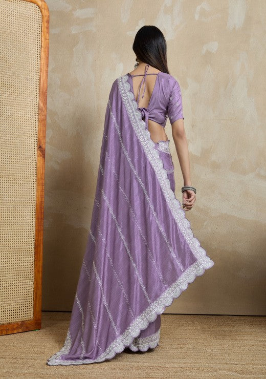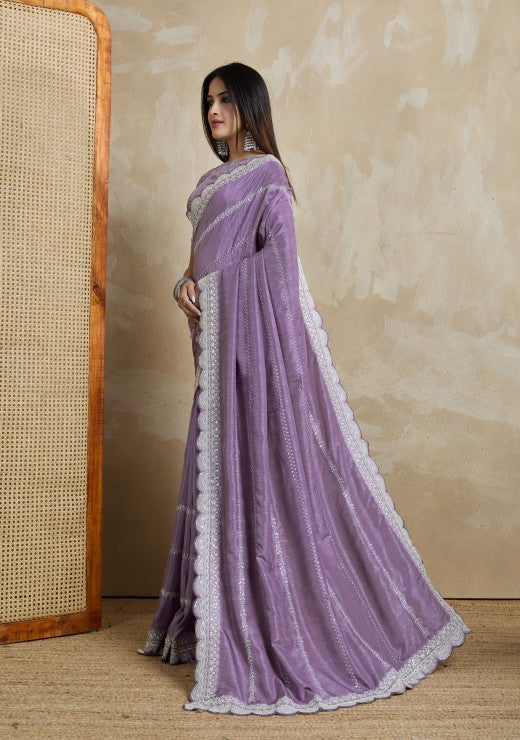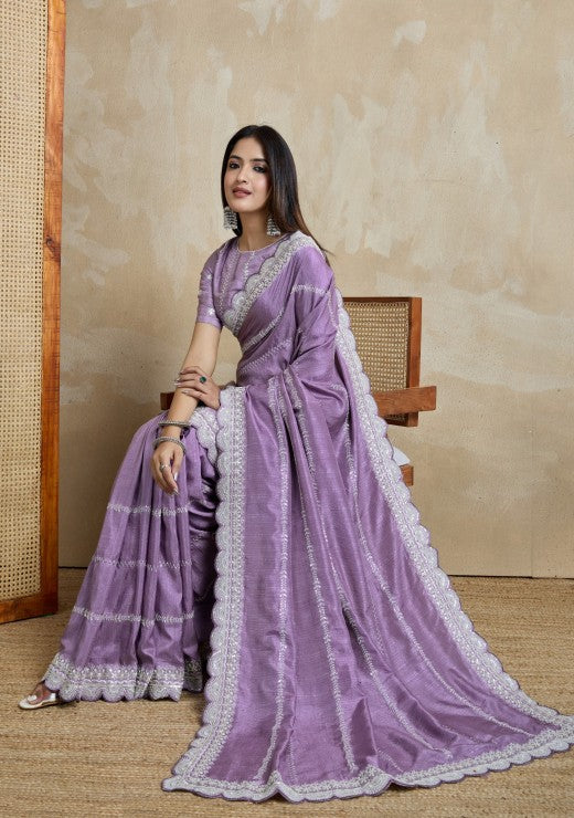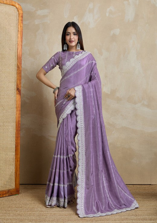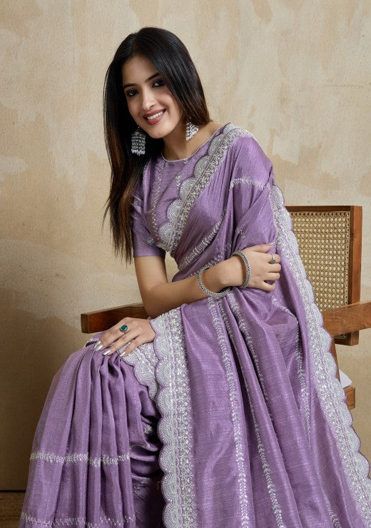 Embroidered::Embellished Bollywood Silk Blend (Purple)