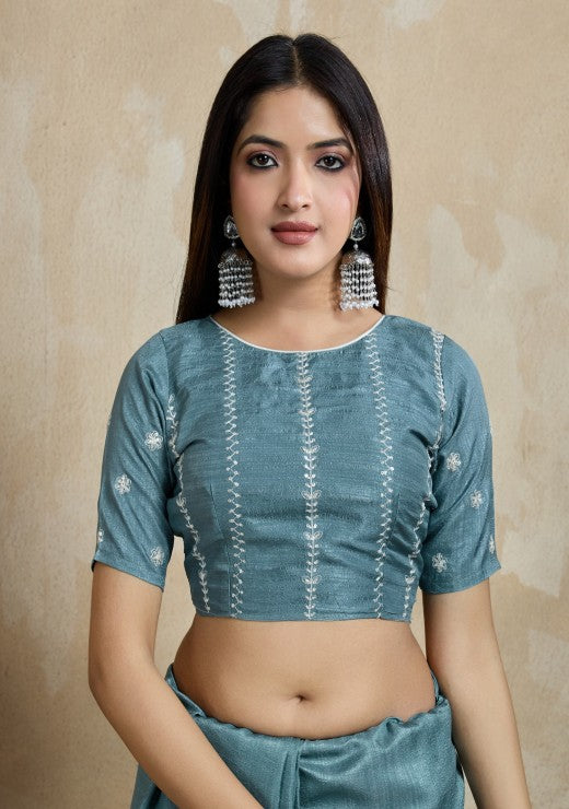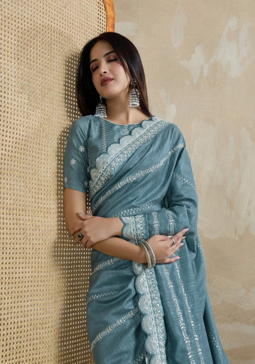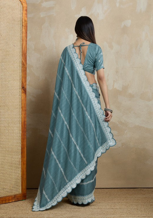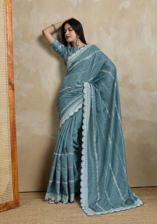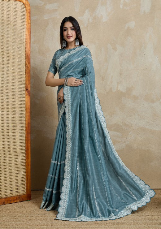 Embroidered::Embellished Bollywood Silk Blend (Blue)