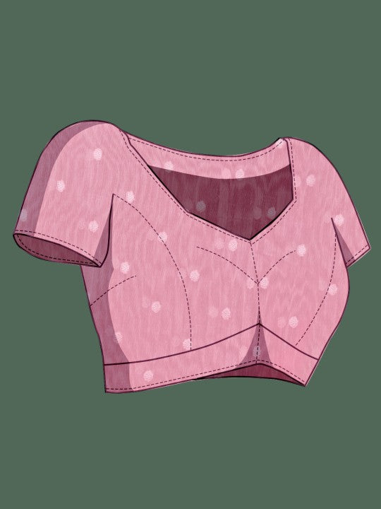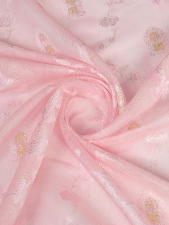 • Woven::Floral Print Bollywood Pure Cotton Saree (Pink)