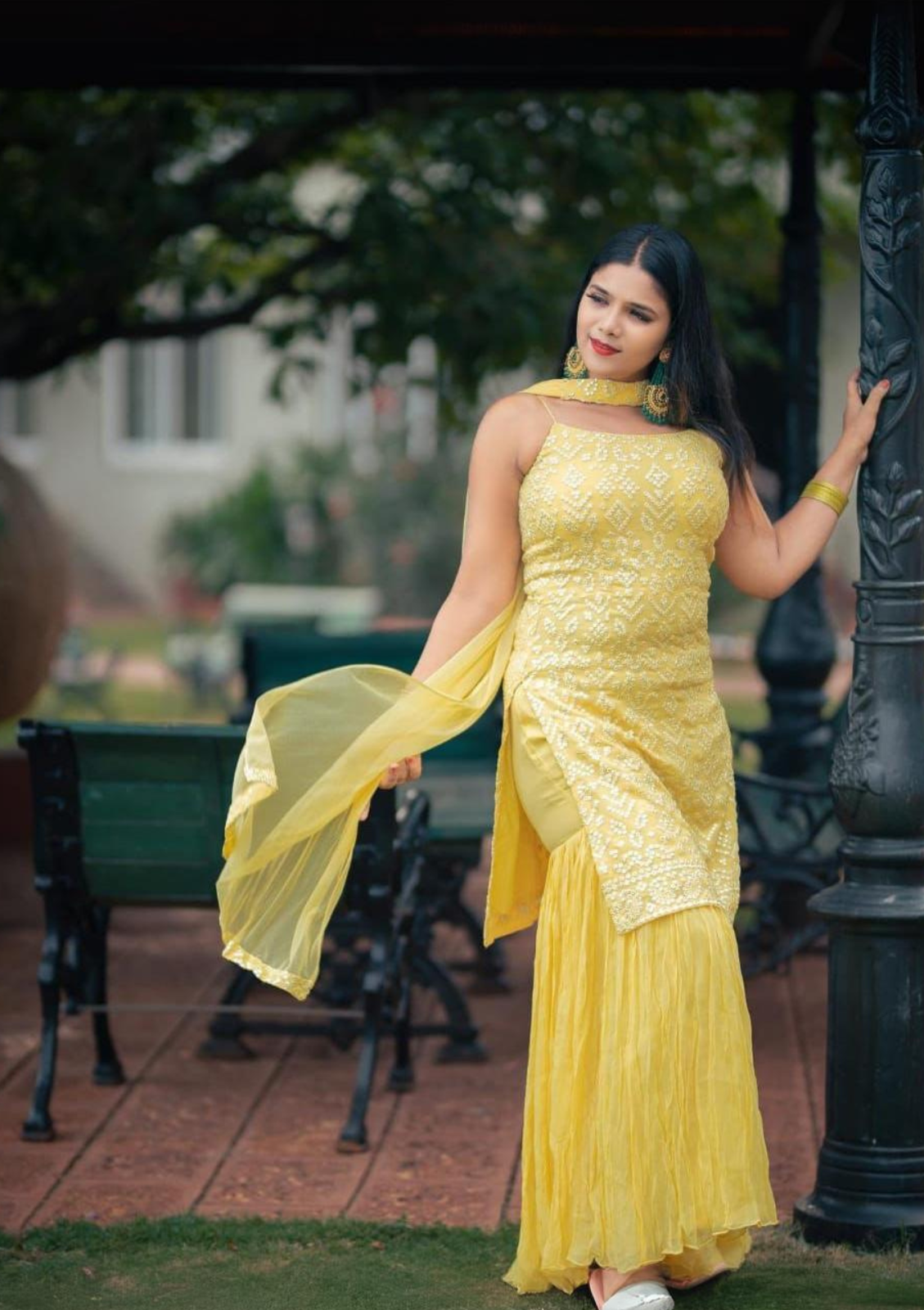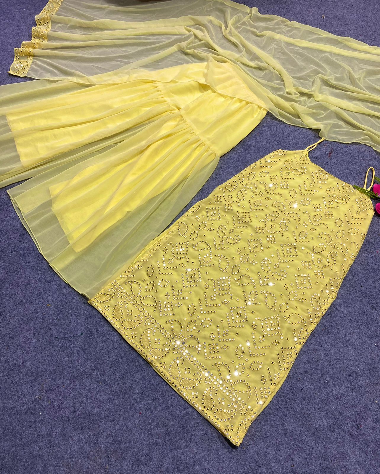 | SUIT | Lemon yellow colour designer palazzo suit |