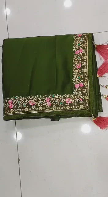 - Saree Work: Embroidery Thread Work And Lace Border With Latkan Pallu