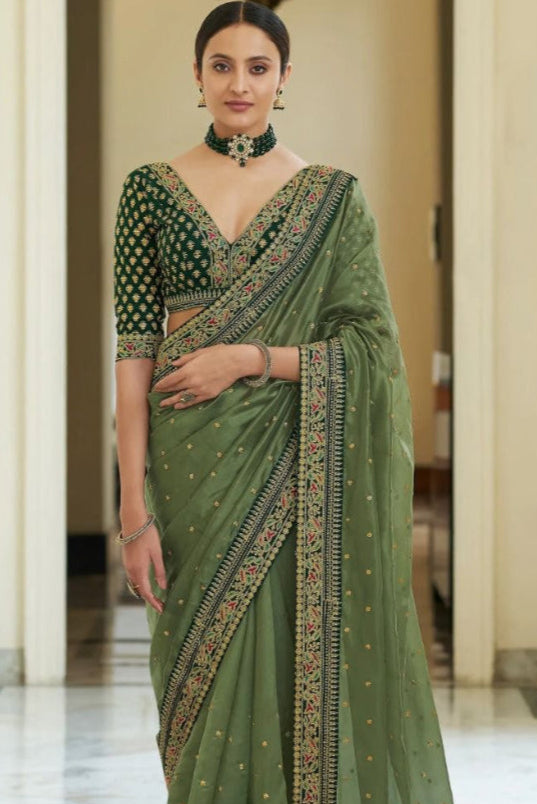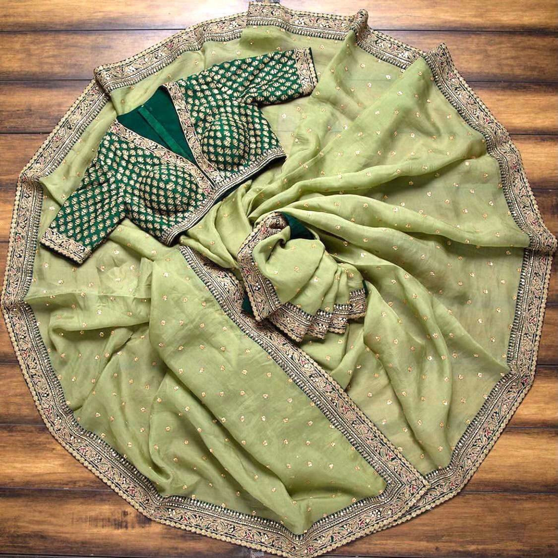 - Blouse Work: Heavy embroidery work on front , back & sleeve