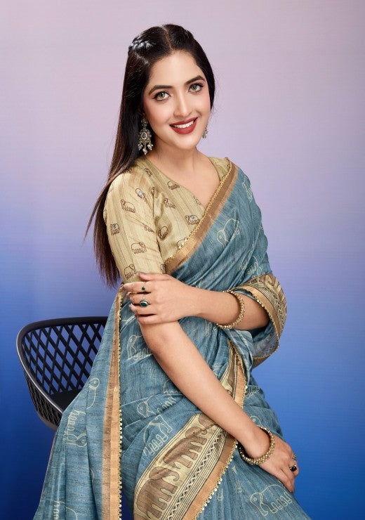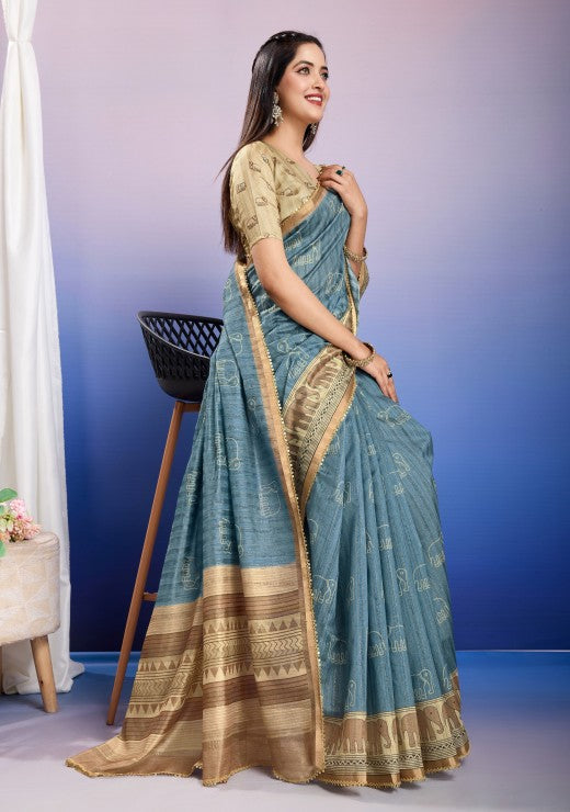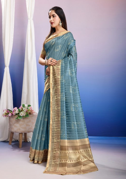 Embroidered Bollywood Silk Blend::Cotton Blend (Blue)