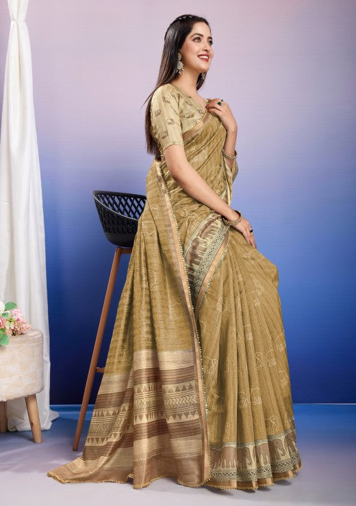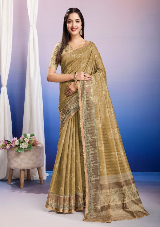 Embroidered Bollywood Silk Blend::Cotton Blend (Gold)