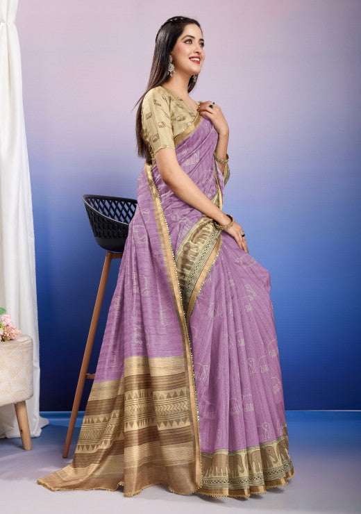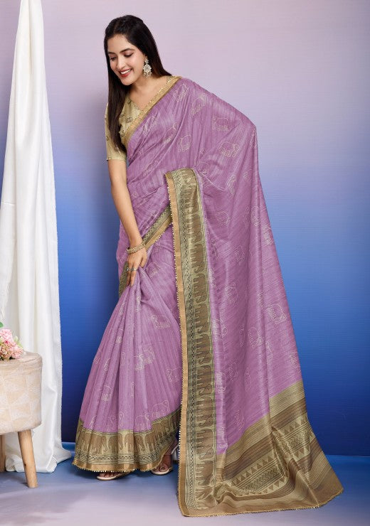 Embroidered Bollywood Silk Blend::Cotton Blend (Purple)