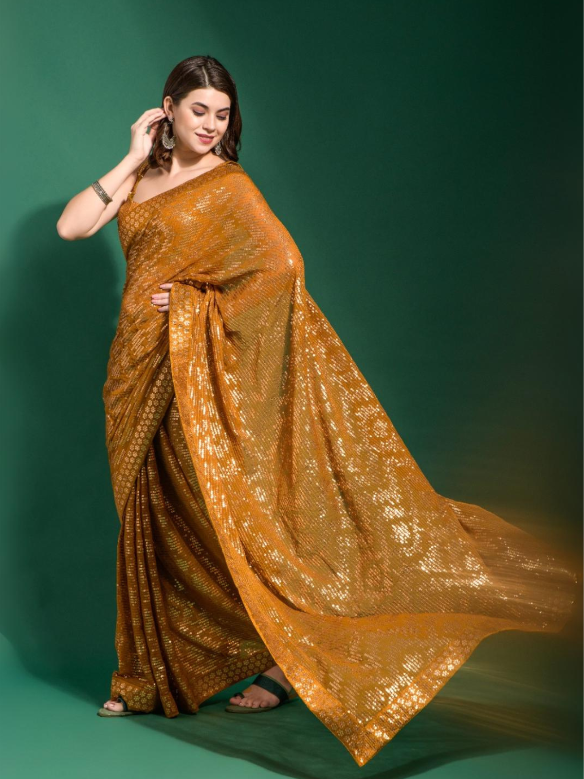 - Package Includes: 1 Saree With Attached Blouse Piece