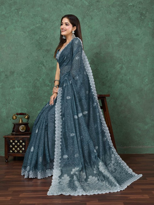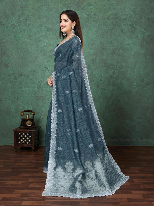 Embroidered Bollywood Pure Cotton Saree (Green)