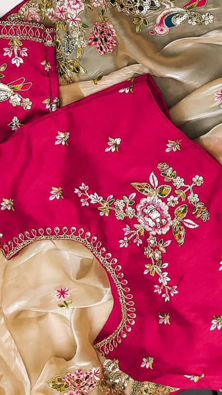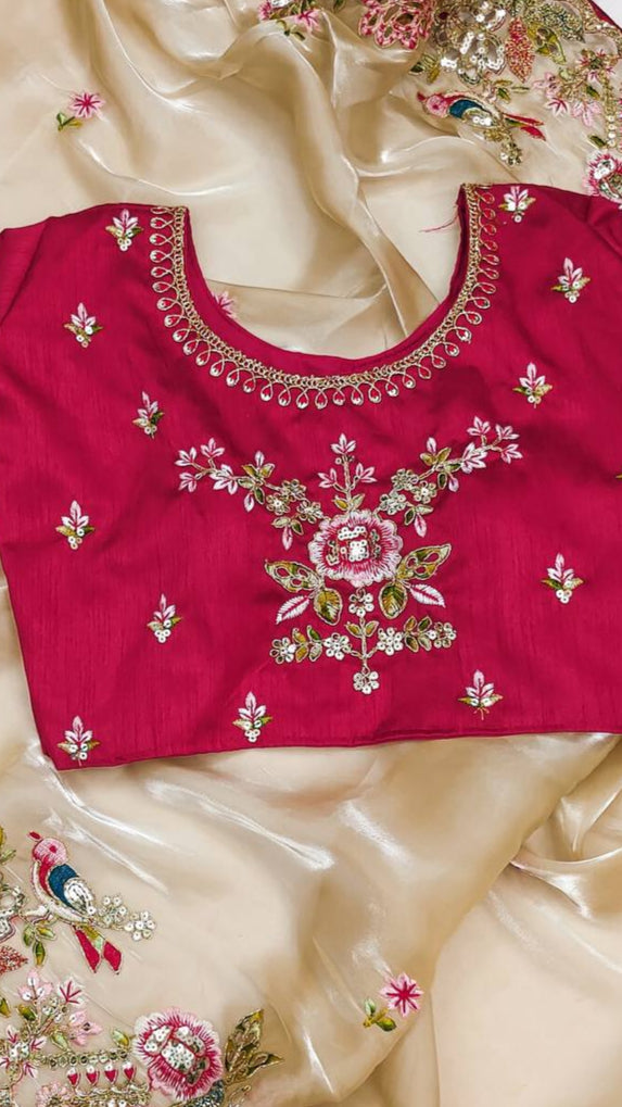 - Blouse Work: Embroidery Front & Back Both Side Work