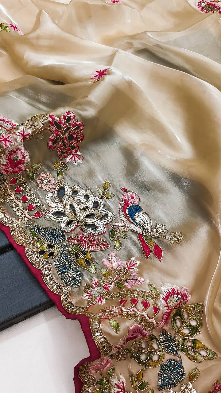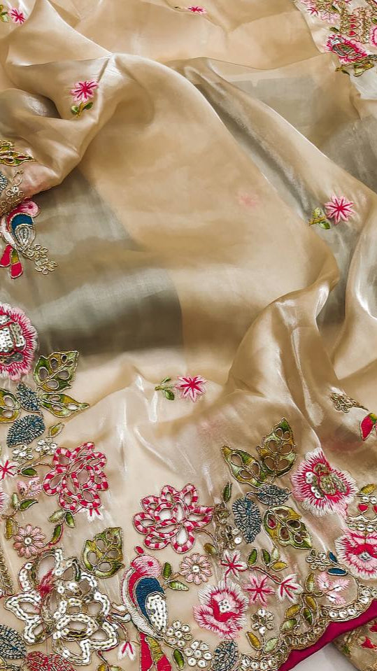 - Saree Work: Embroidery Multi Threads And Sequences Fancy Cut In Work