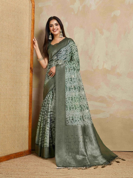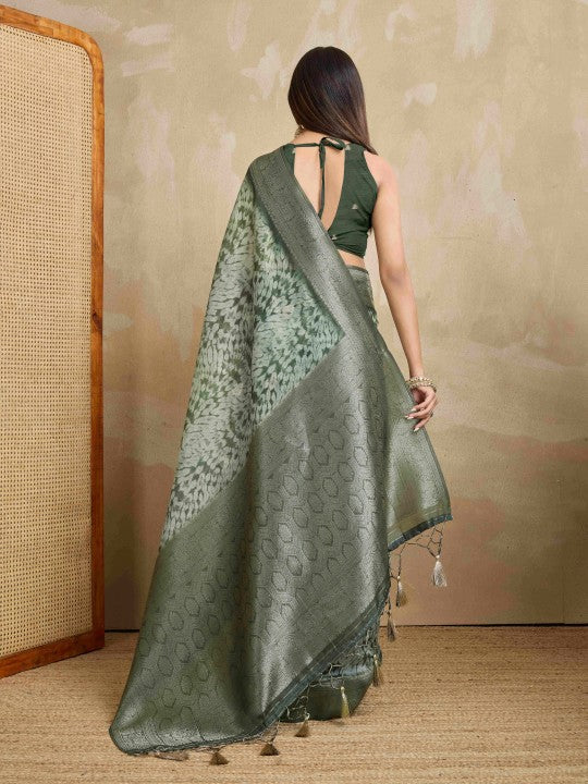 Woven Bollywood Pure Cotton Saree (Green)