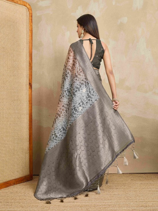 • Woven Bollywood Pure Cotton Saree (Grey)