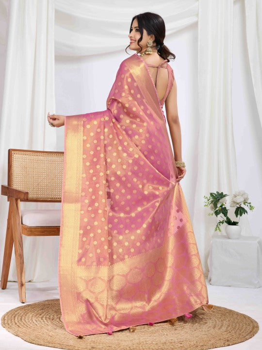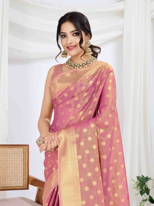 Woven Banarasi Tissue Saree (Pink)