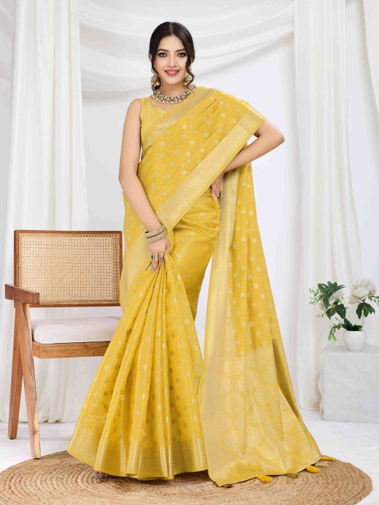 Woven Banarasi Tissue Saree (Yellow)