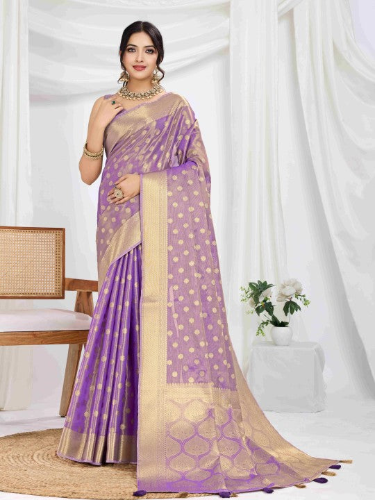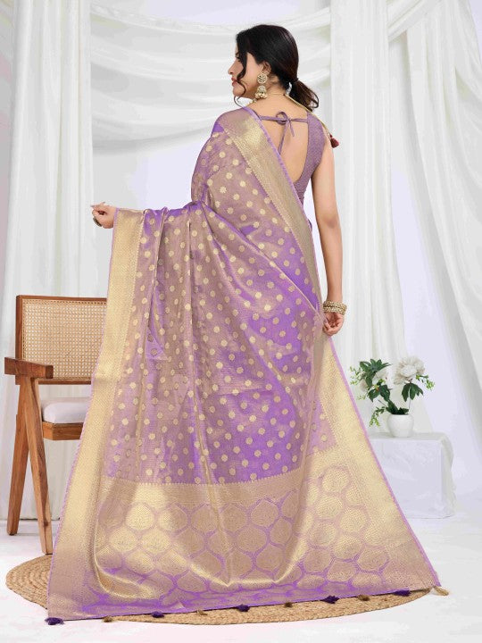 Woven Banarasi Tissue Saree (Purple)